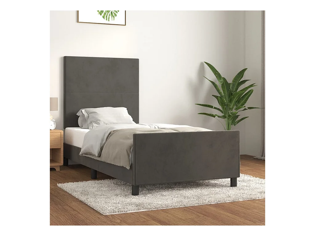 Lit simple + tête de lit Gris foncé 90x190 cm Velours FR94413