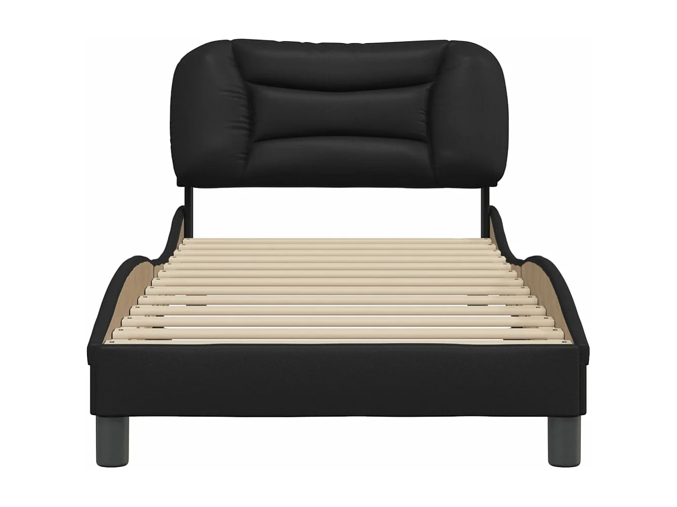 Lit simple + tête de lit Noir 90x200 cm Similicuir FR72736