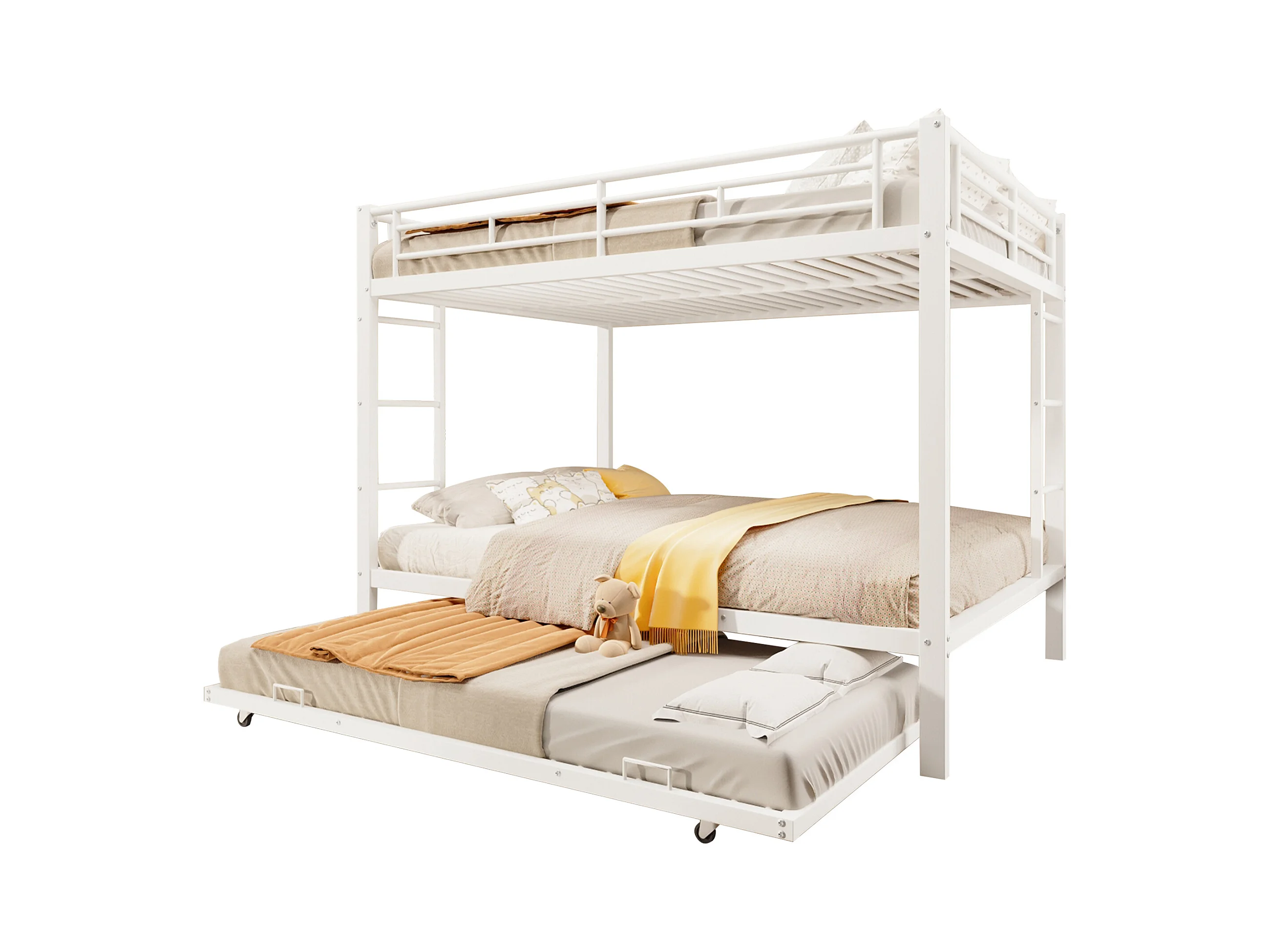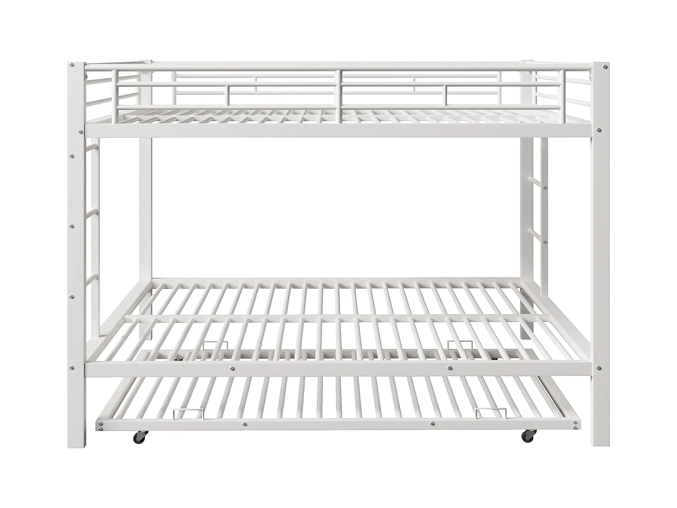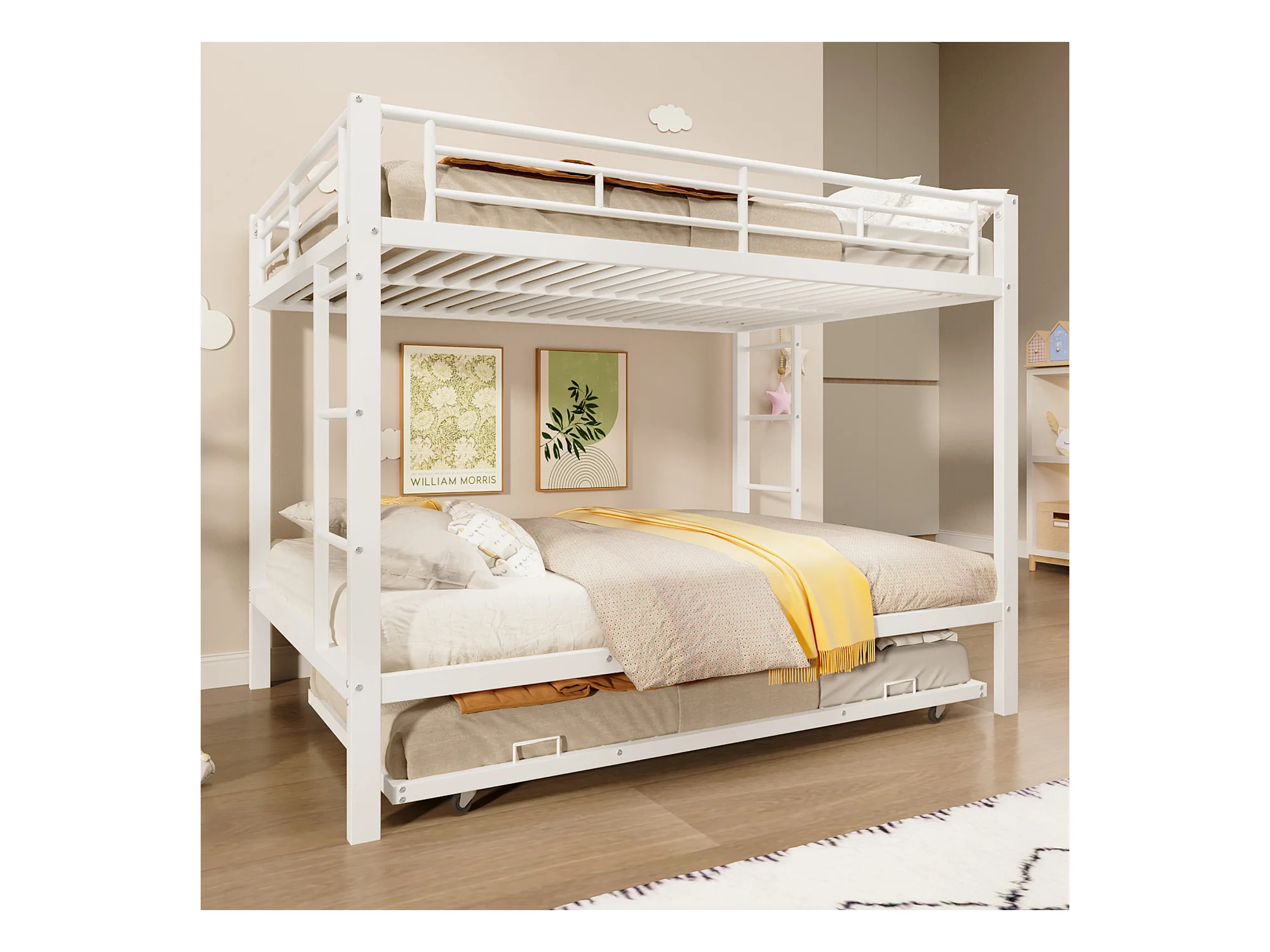 Lit superposé 140x200 cm - avec lit gigogne - Barrières hautes - blanc (matelas non inclus)