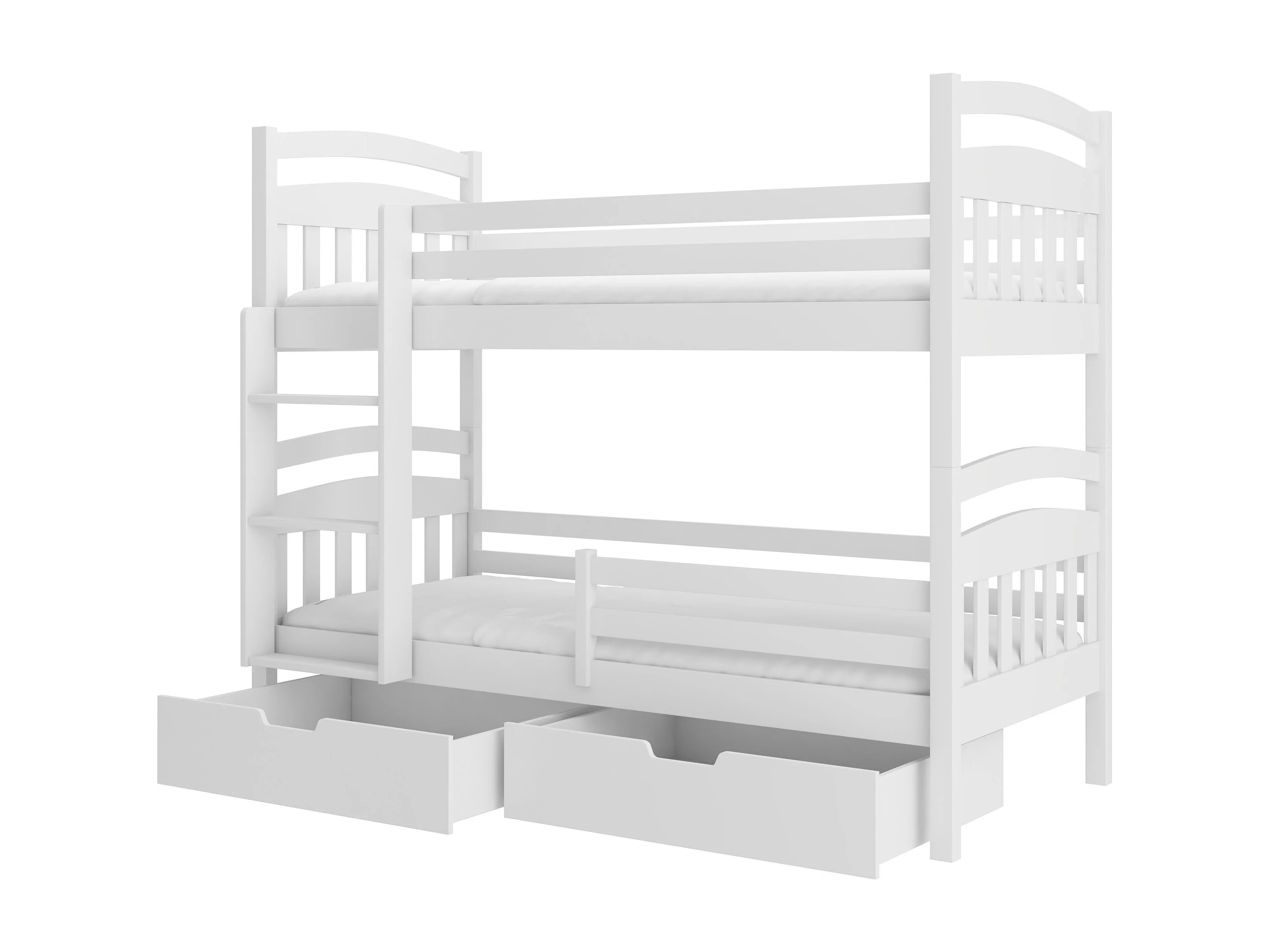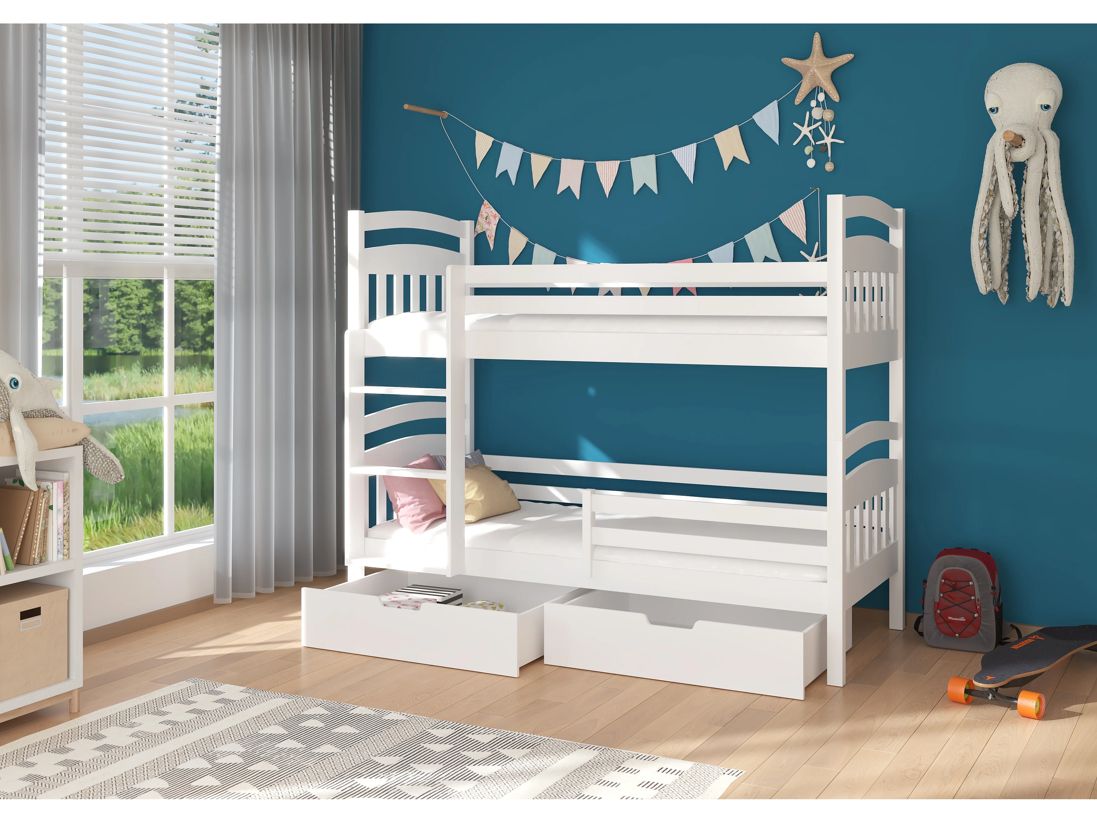 Lit superposé 2 places MADRA– 2 tiroirs de rangement et 2 sommiers-Blanc-80x180