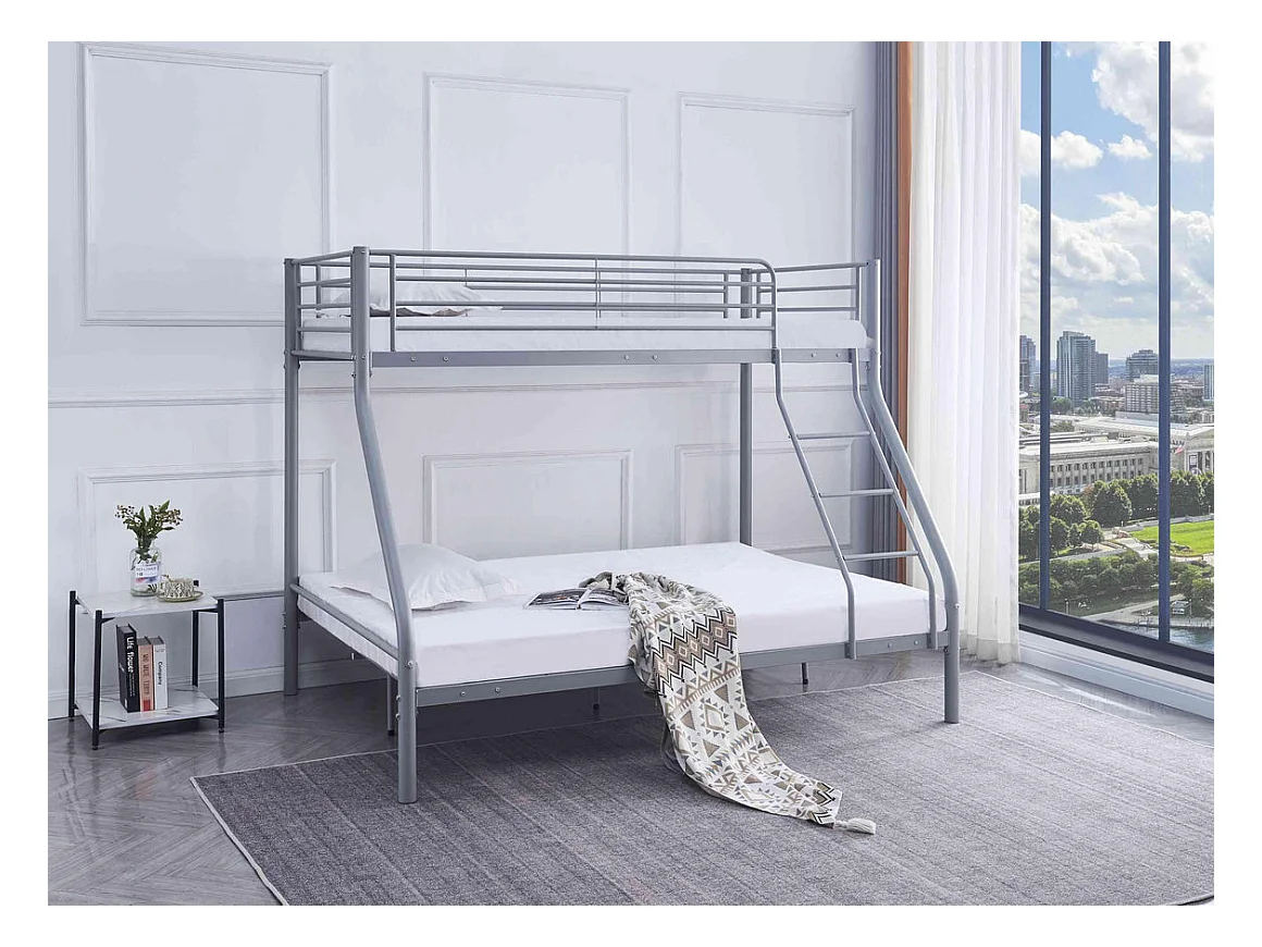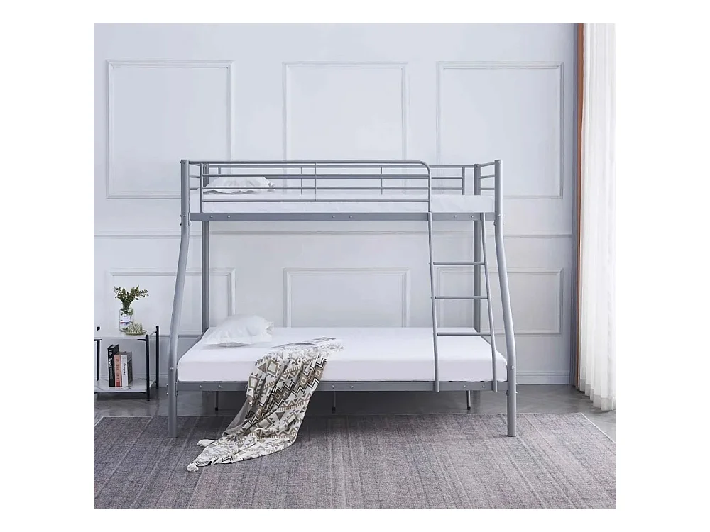 Lit superposé 3 places 2+1 métal COSTO sommier inclus gris