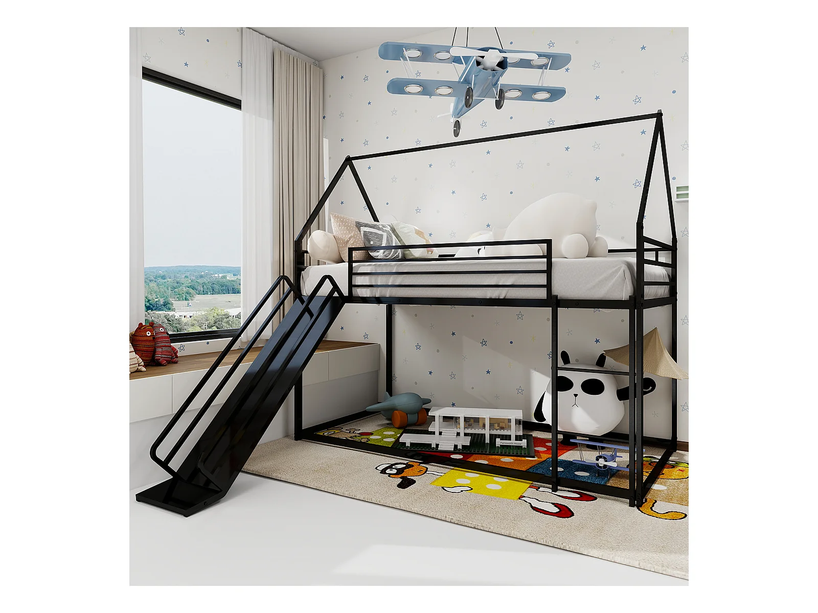 Lit superposé 90 x 190 cm - Lit enfant avec échelle et toboggan - métal noir - sans matelas