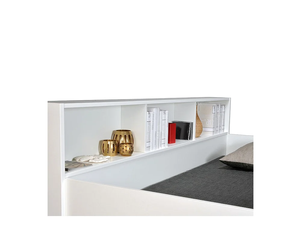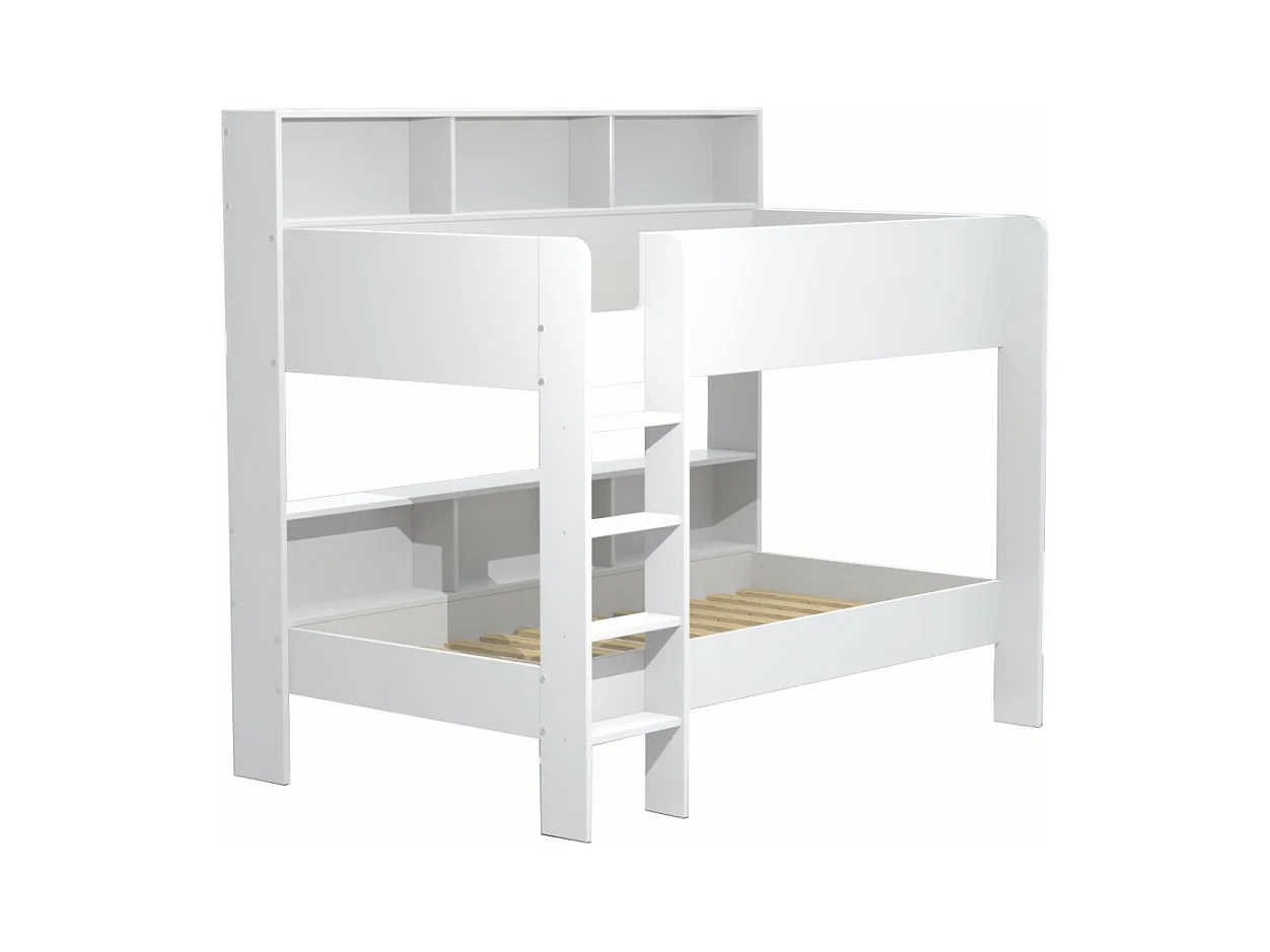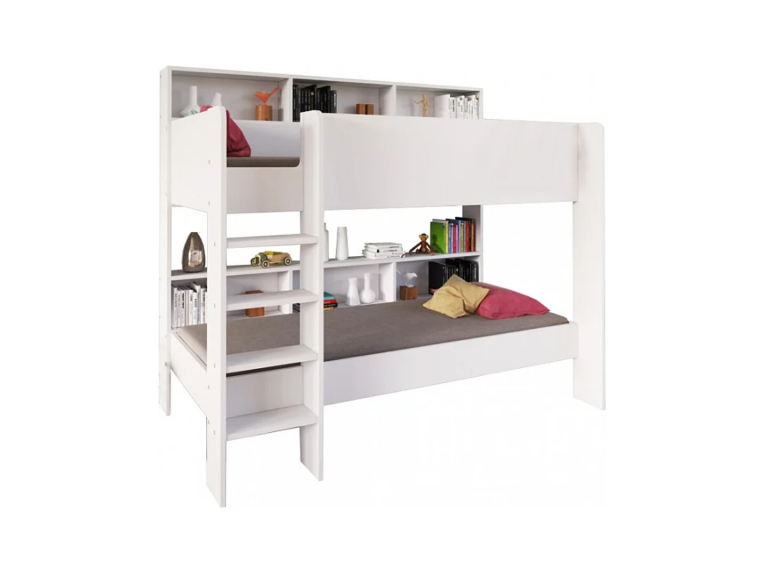 Lit superposé 90x190 LIVA Blanc incl. 2 sommiers et étagères de rangement
