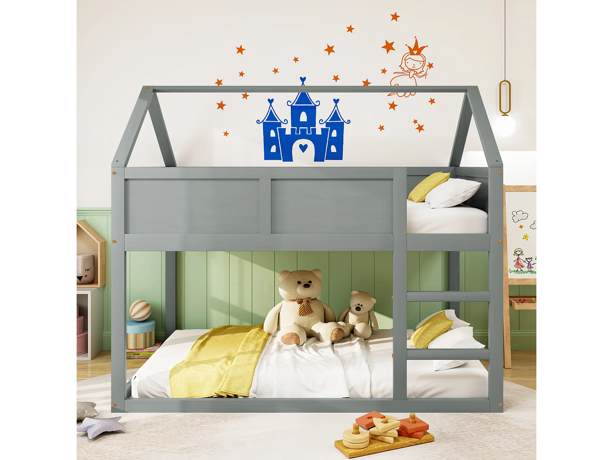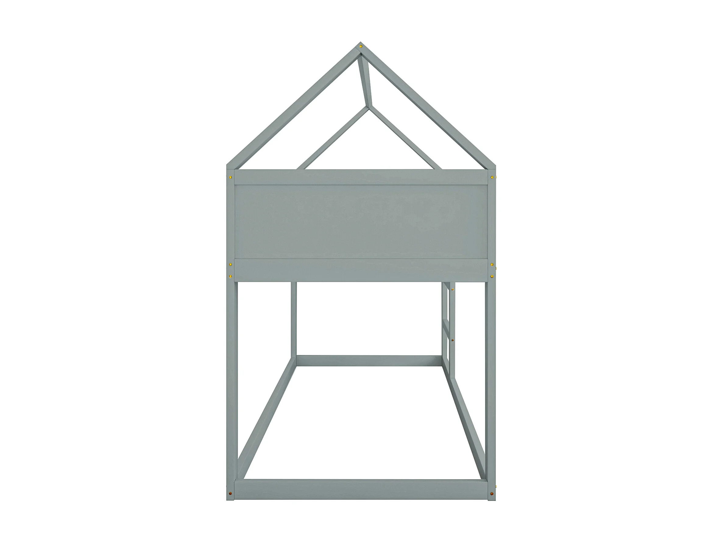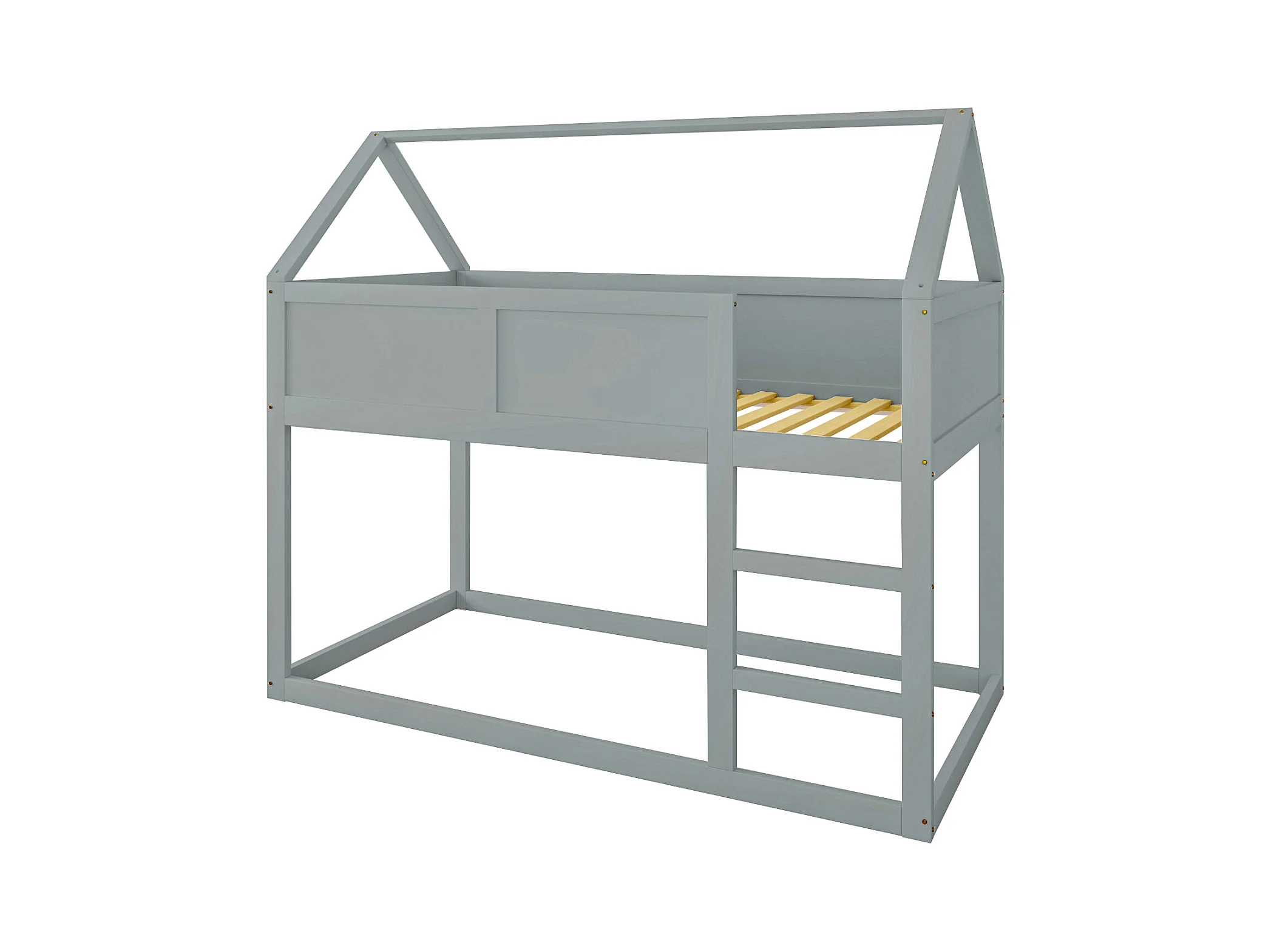 Lit superposé 90x200 cm - Lit enfant avec escalier et barrière de sécurité - bois - gris