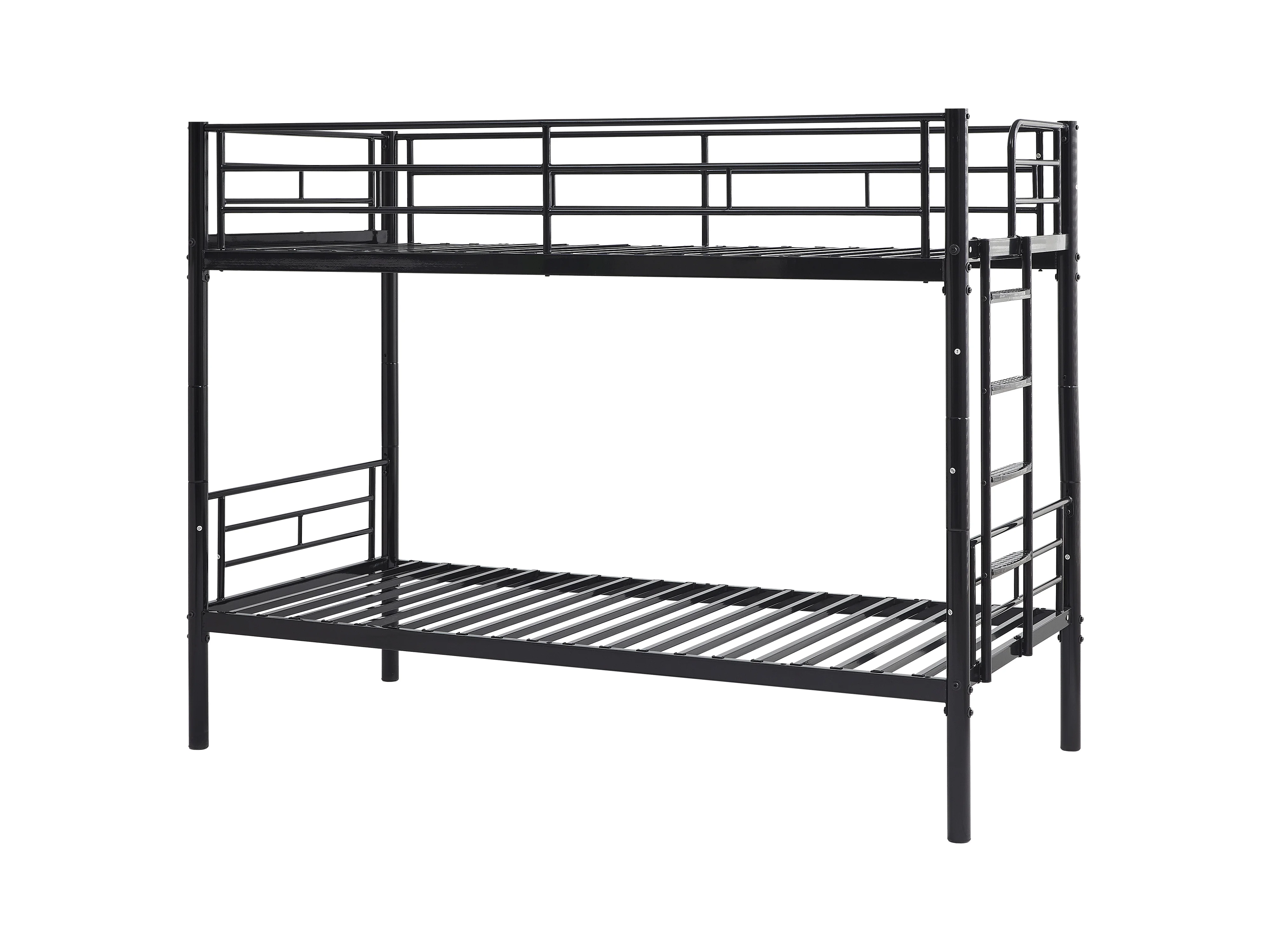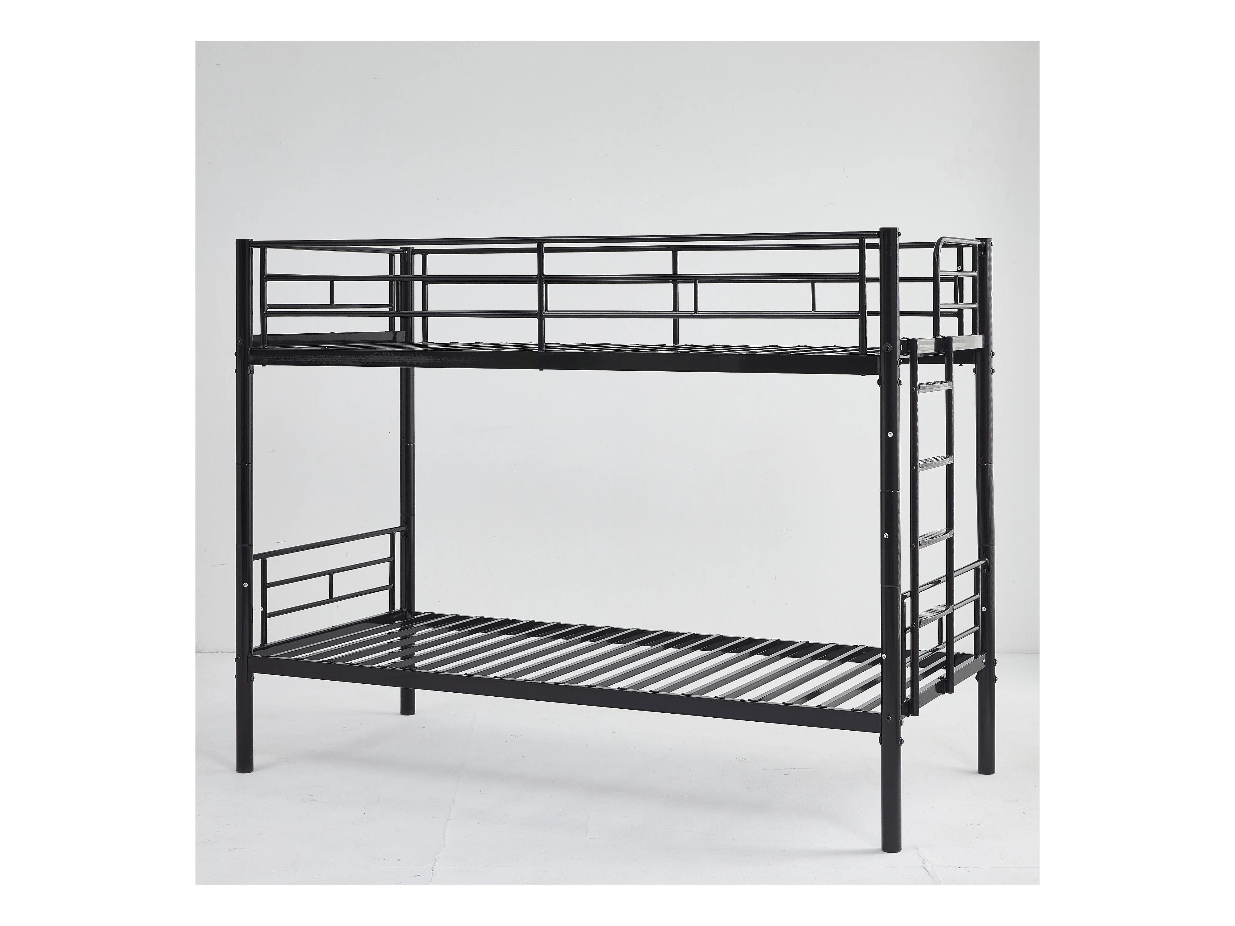 Lit superposé enfant 90x200 cm avec barrières de sécurité et échelle, sommier inclus, cadre en métal Noir, sans matelas