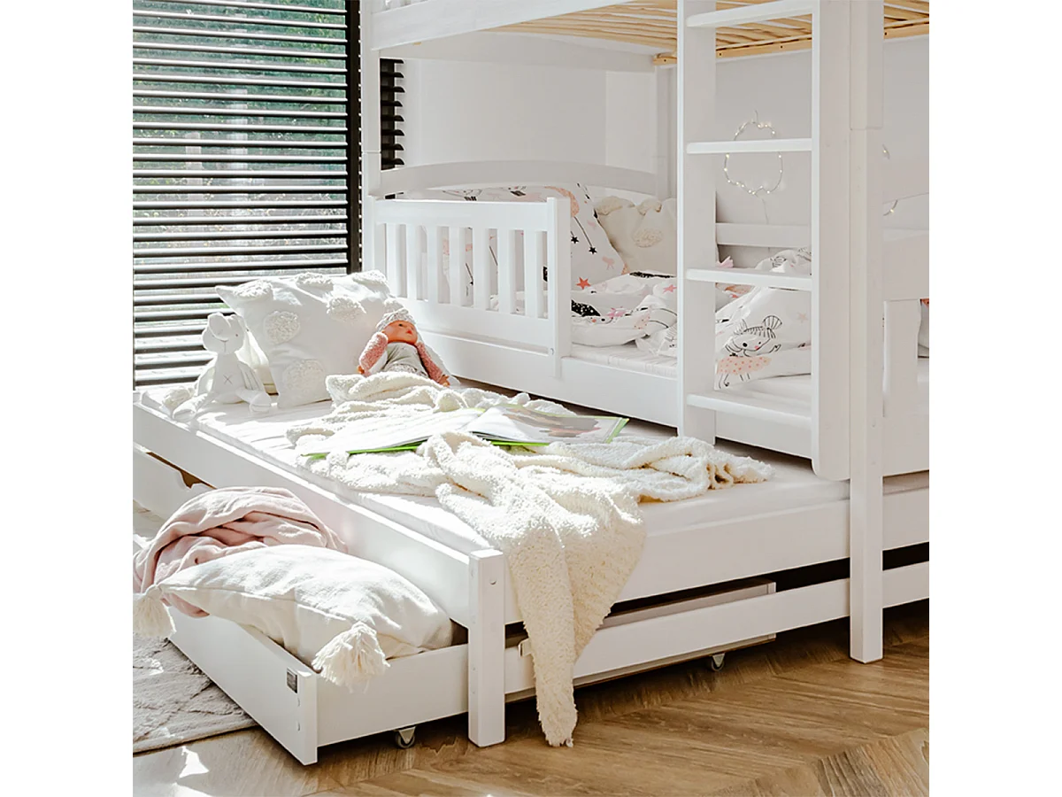 Lit superposé 90x200 sommier lit gigogne et tiroirs inclus Jules Blanc