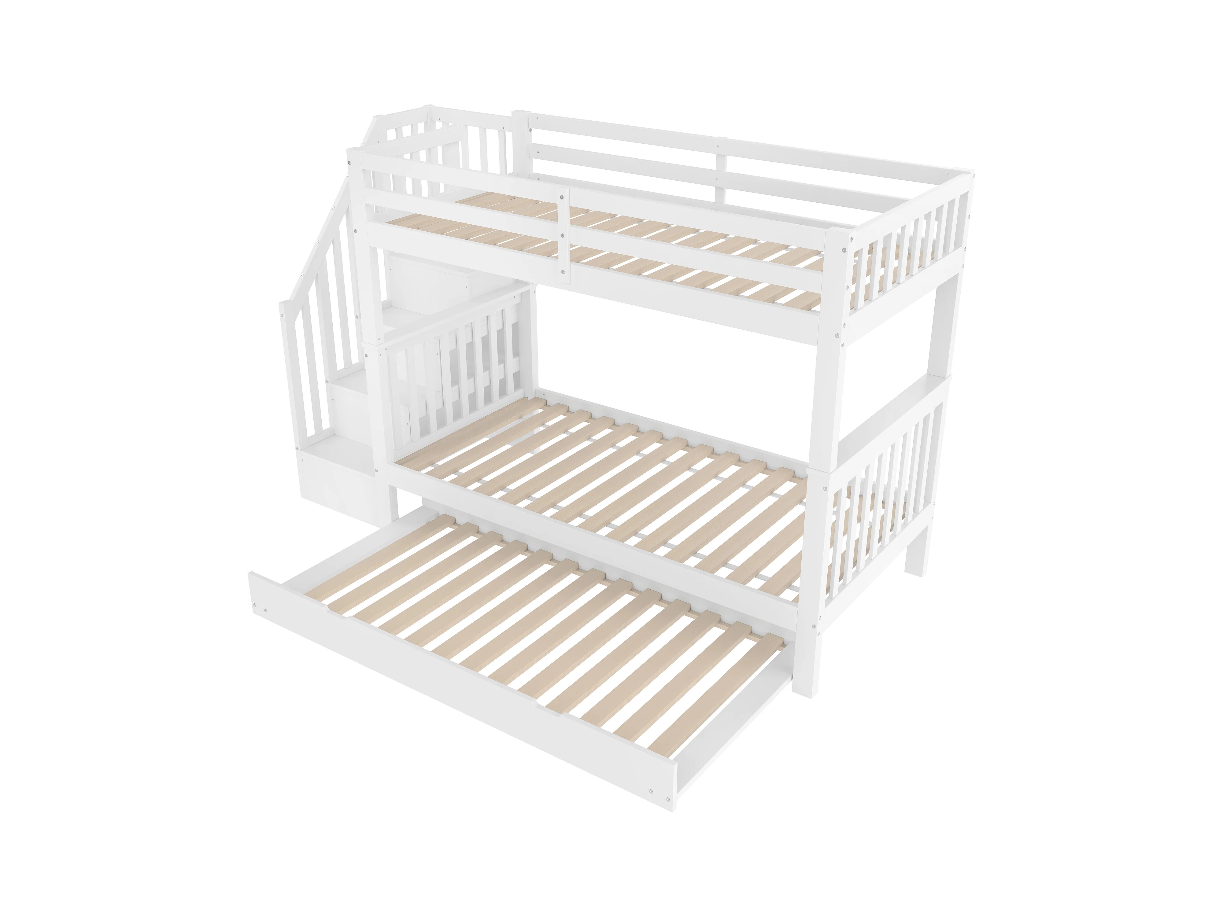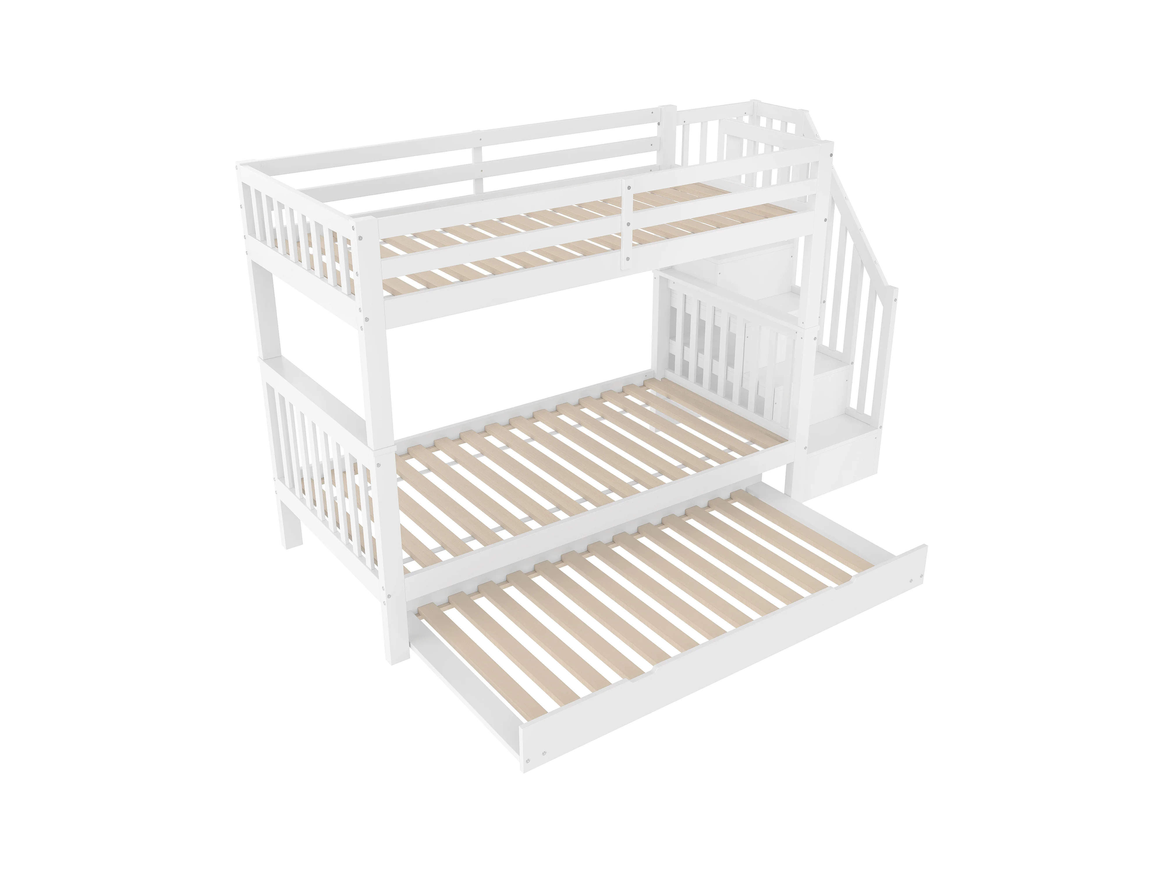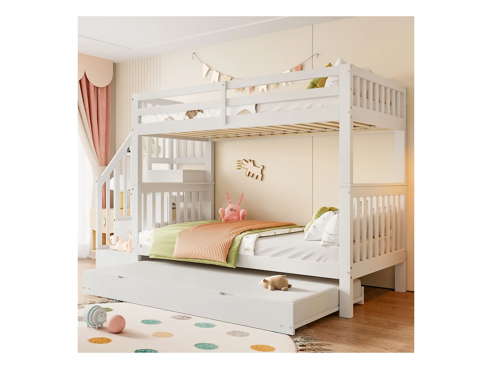 lit superposé 90X200cm , étagère d'escalier, équipé d'un lit à roulettes extensible, garde-corps haut, certifié EN747-1, blanc