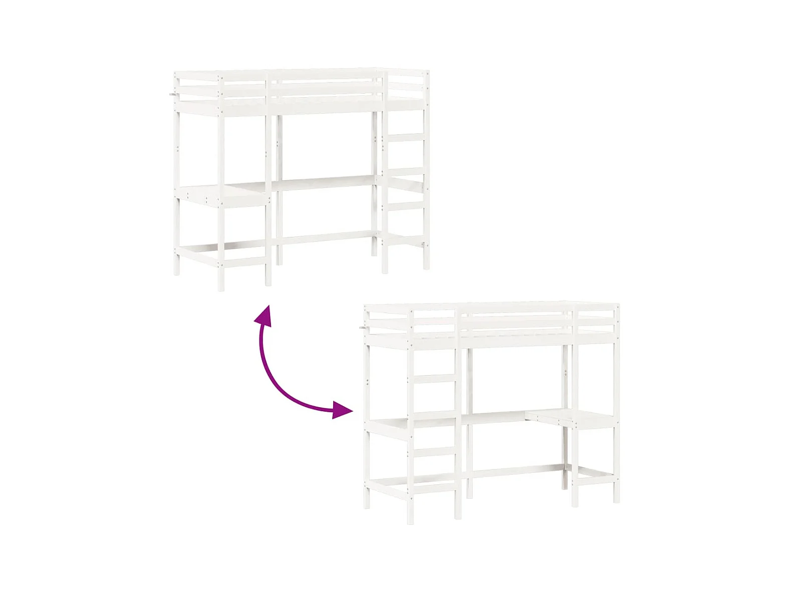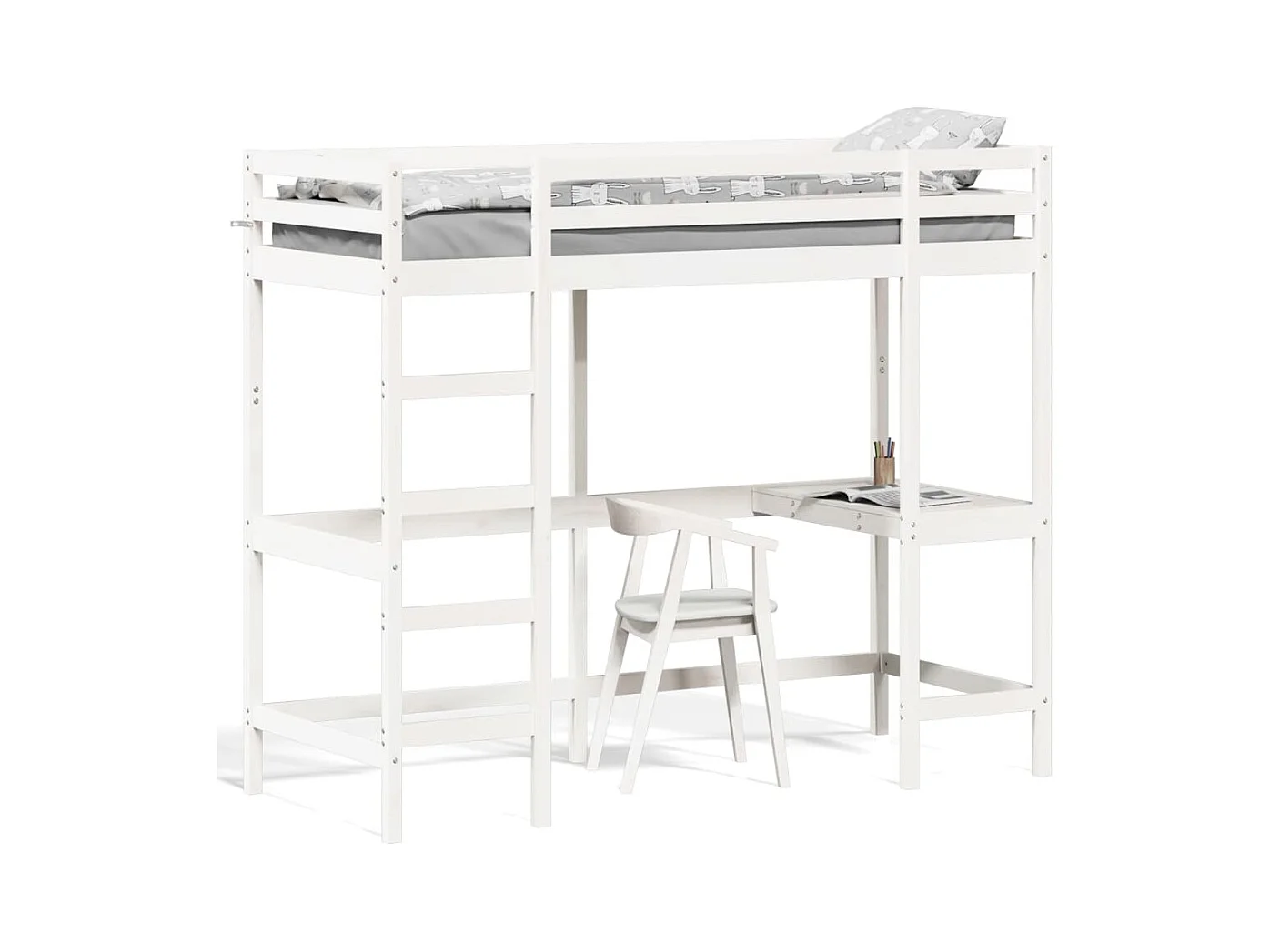 Lit superposé avec bureau blanc 75x190 cm bois de pin massif