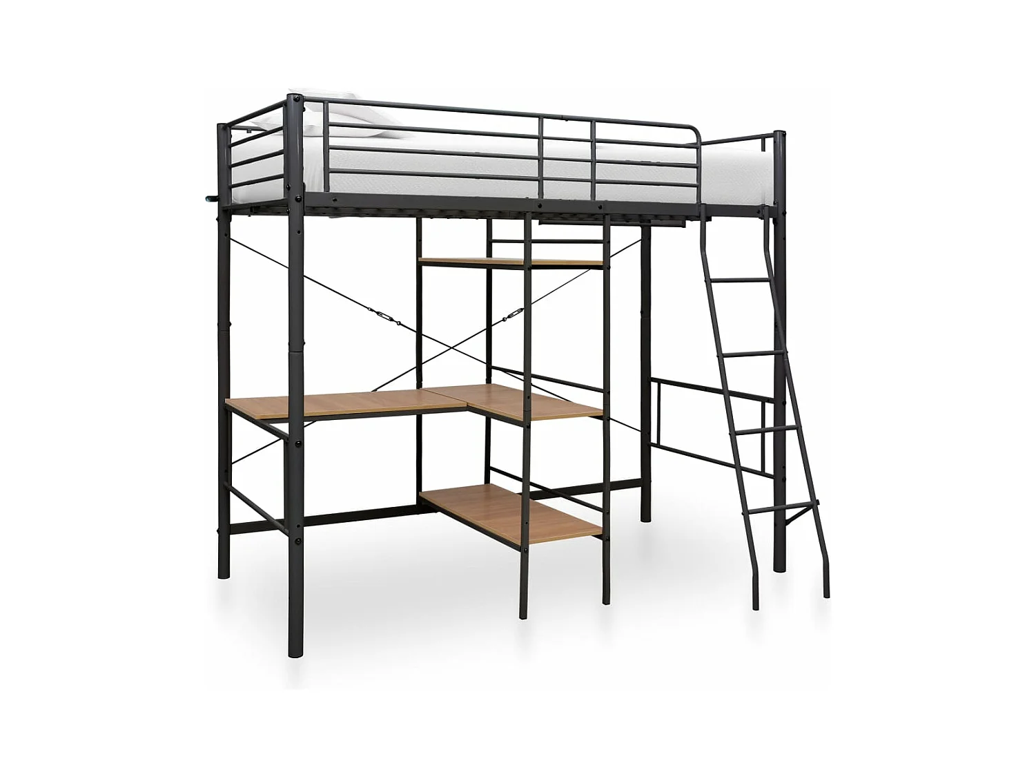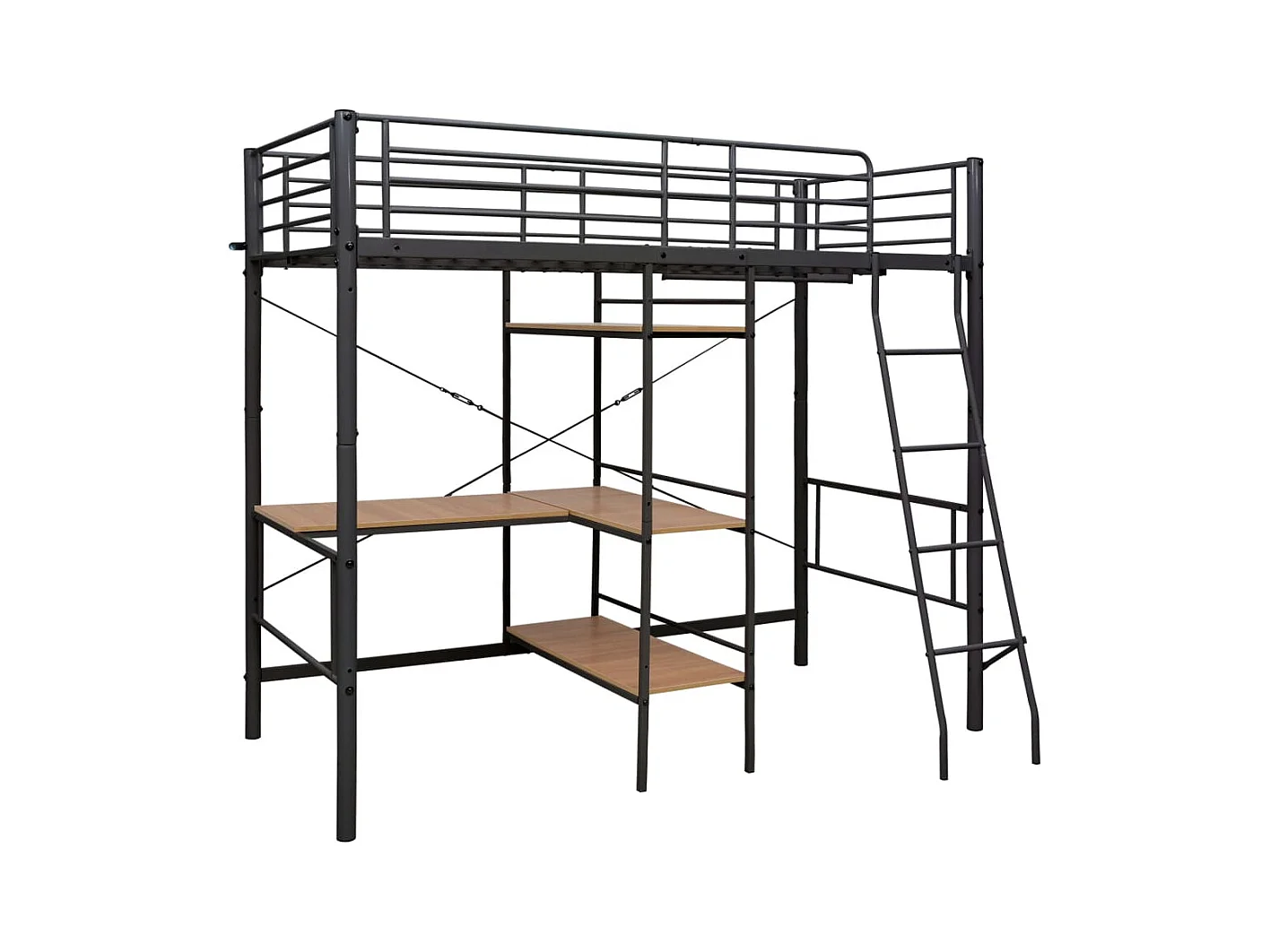 Lit superposé avec cadre de table Gris Métal 90x200 cm