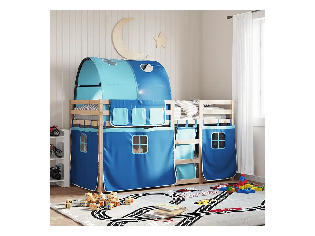 Lit superposé avec rideaux bleu 80x200 cm bois pin massif FR71653