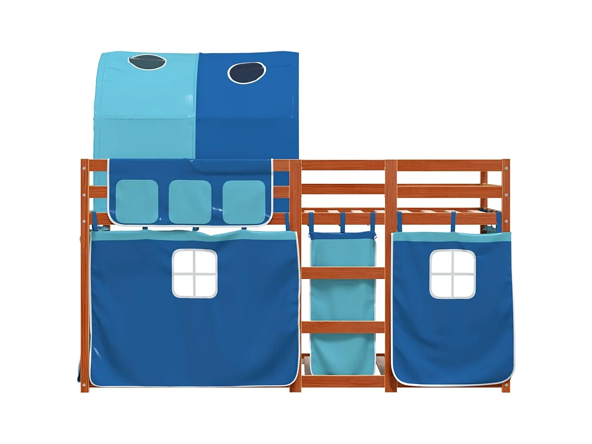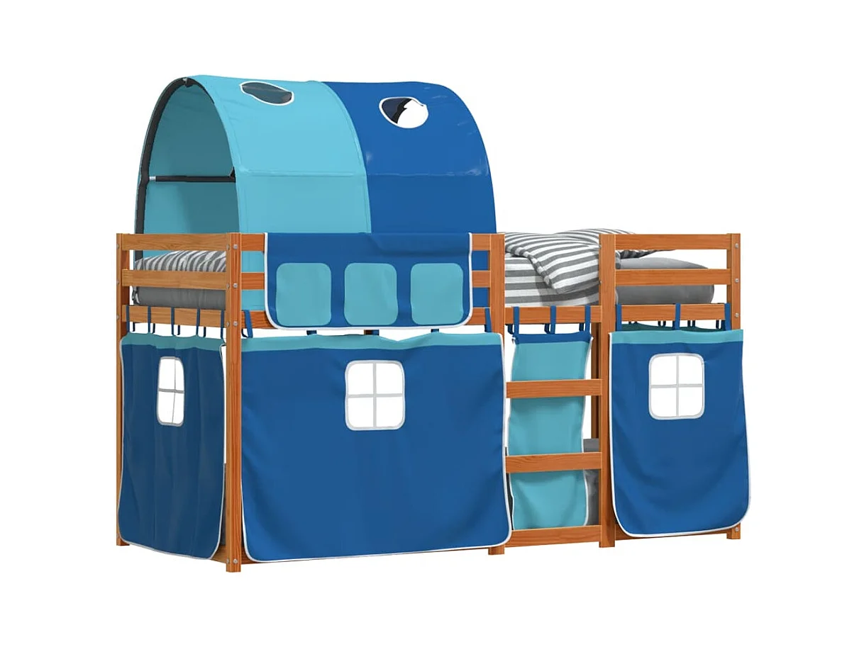 Lit superposé avec rideaux bleu 90x200 cm bois pin massif FR22816