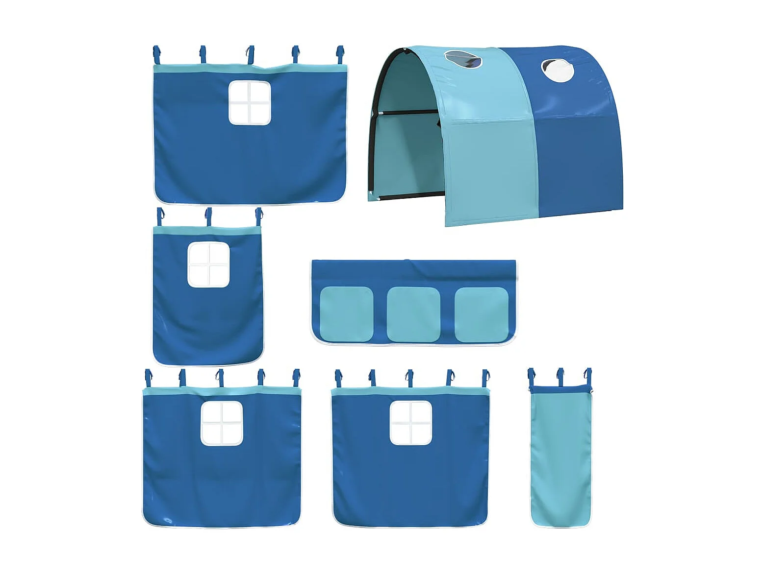 Lit superposé avec toboggan et rideaux bleu 90x190 cm