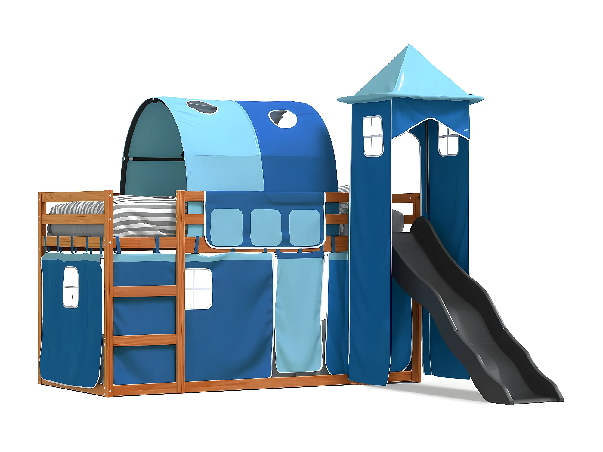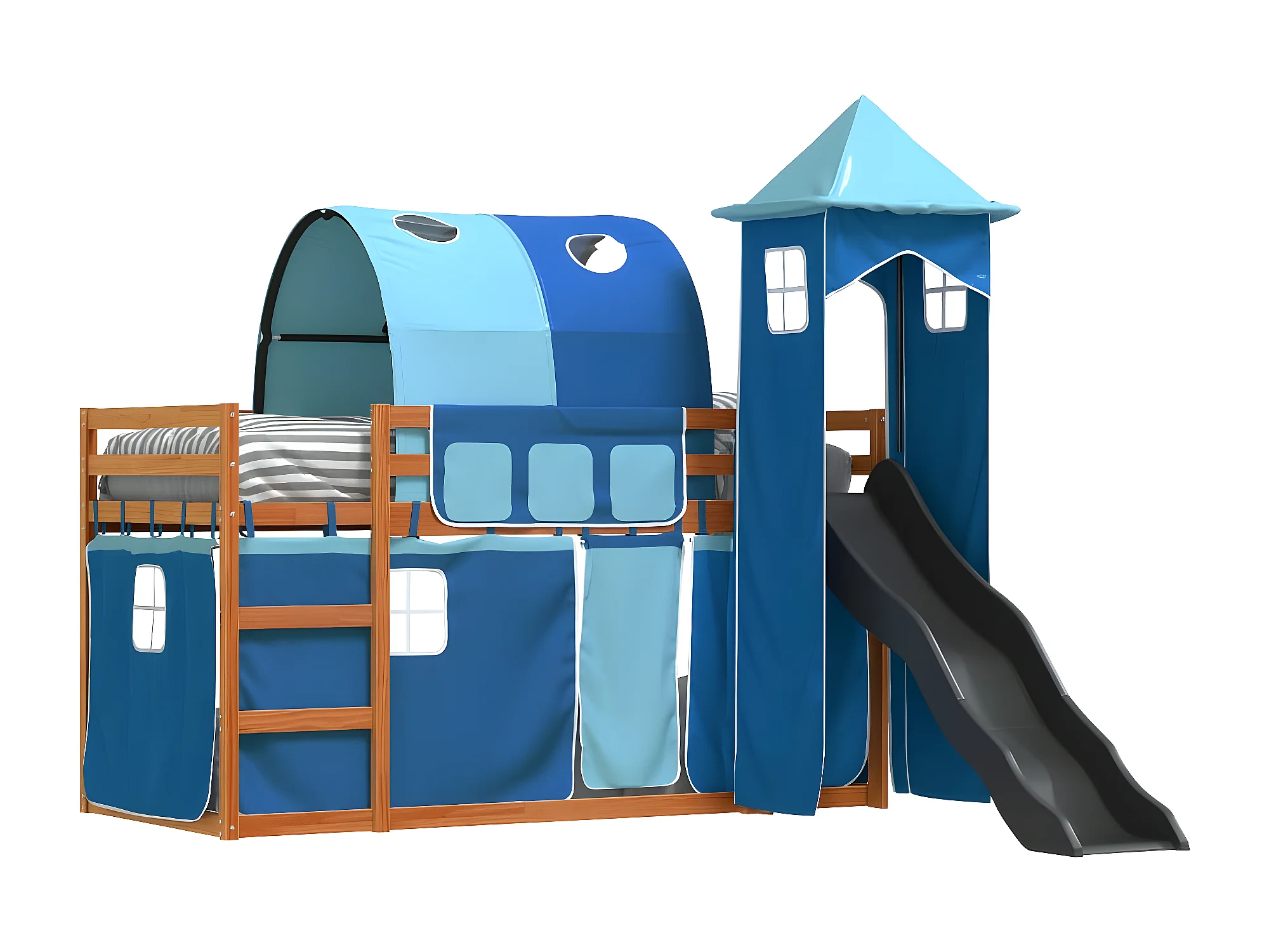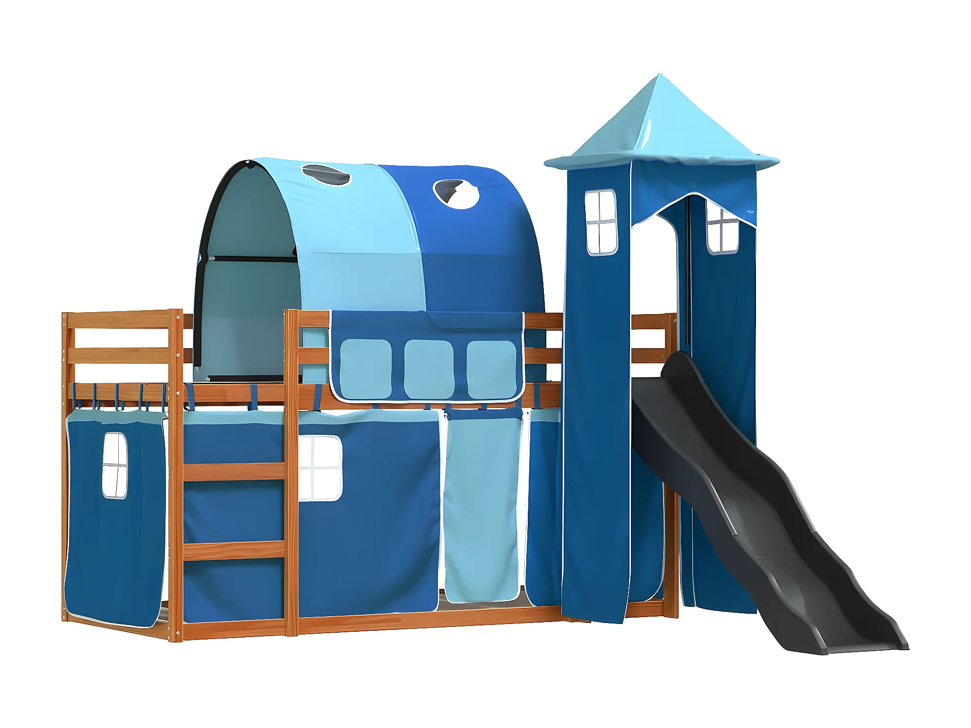 Lit superposé avec toboggan et rideaux bleu 90x200 cm