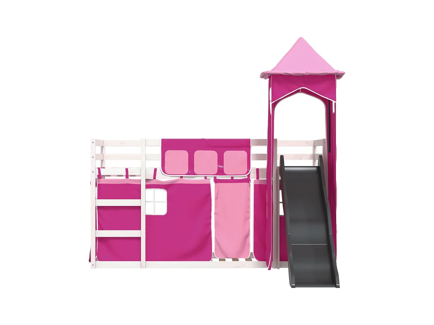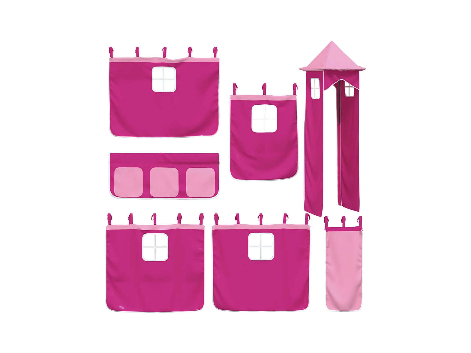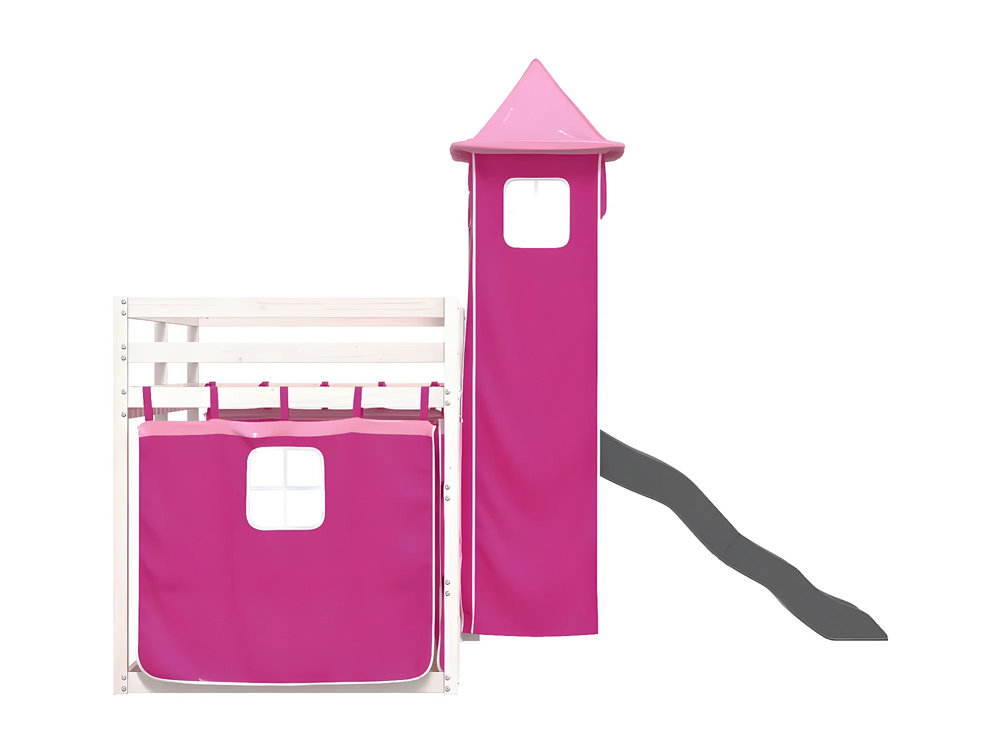 Lit superposé avec toboggan et rideaux rose 90x190 cm