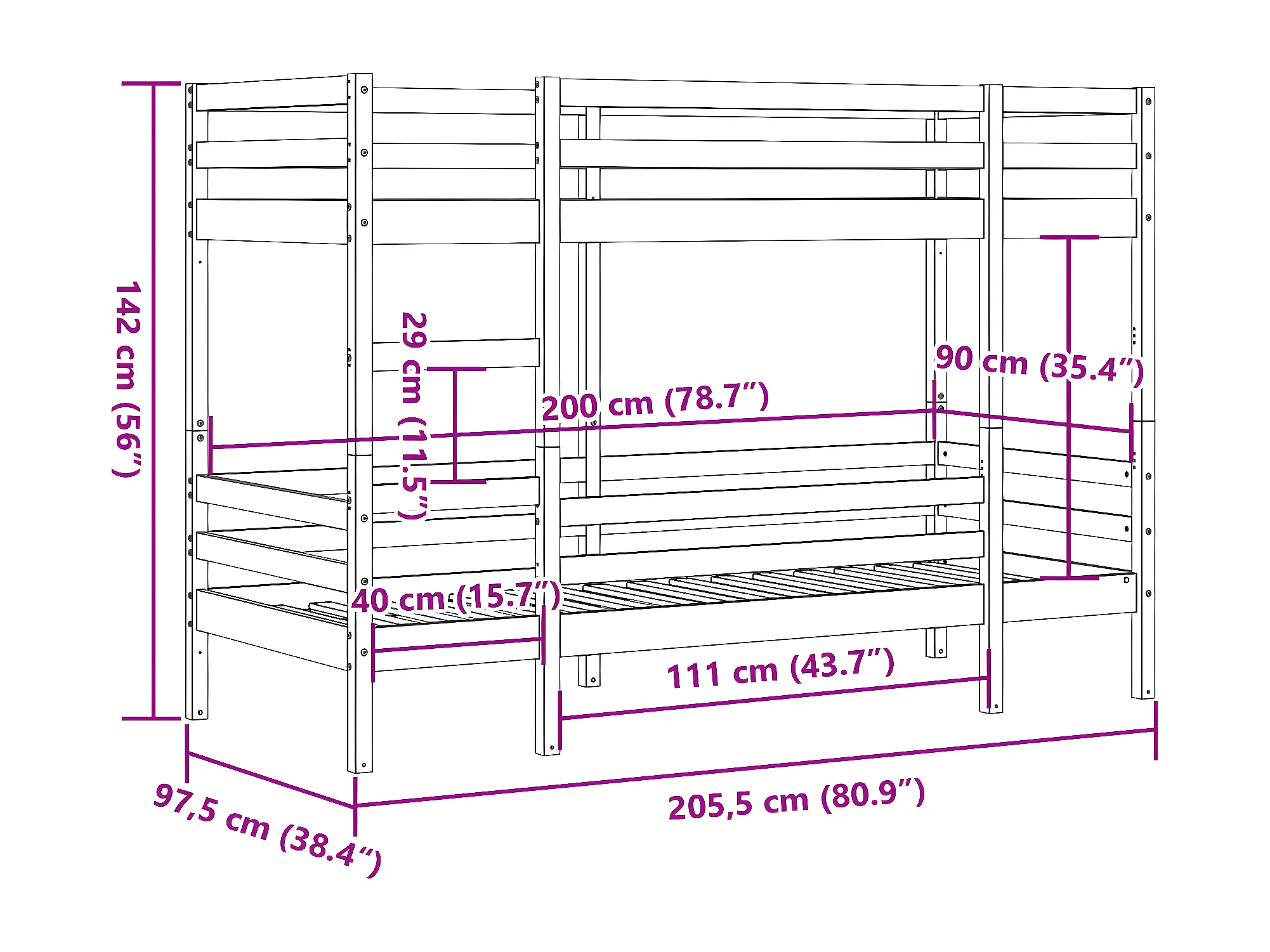 Lit superposé Blanc 90x200 cm Bois de pin massif