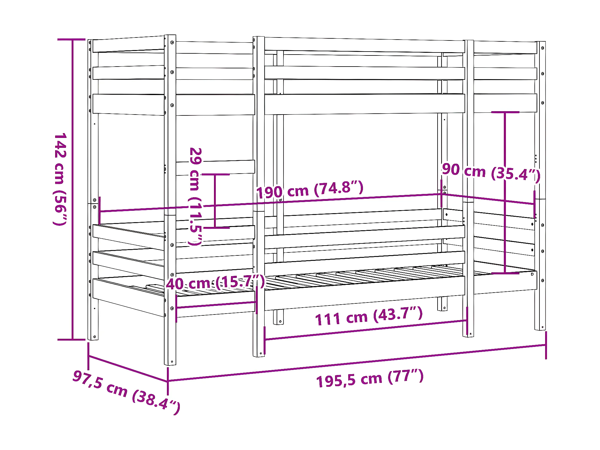 Lit superposé cire marron 90x190 cm bois de pin massif
