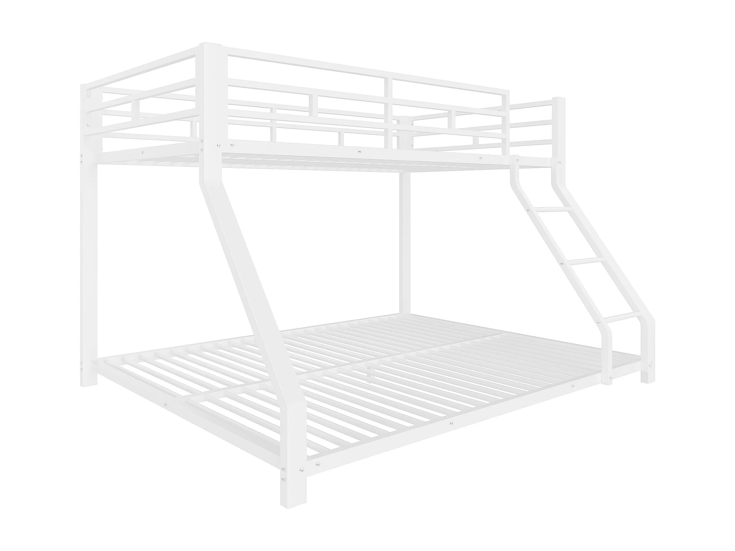 Lit superposé enfant 90x200cm + 140x200cm - lit métal blanc - Barrière et Escalier - sans matels