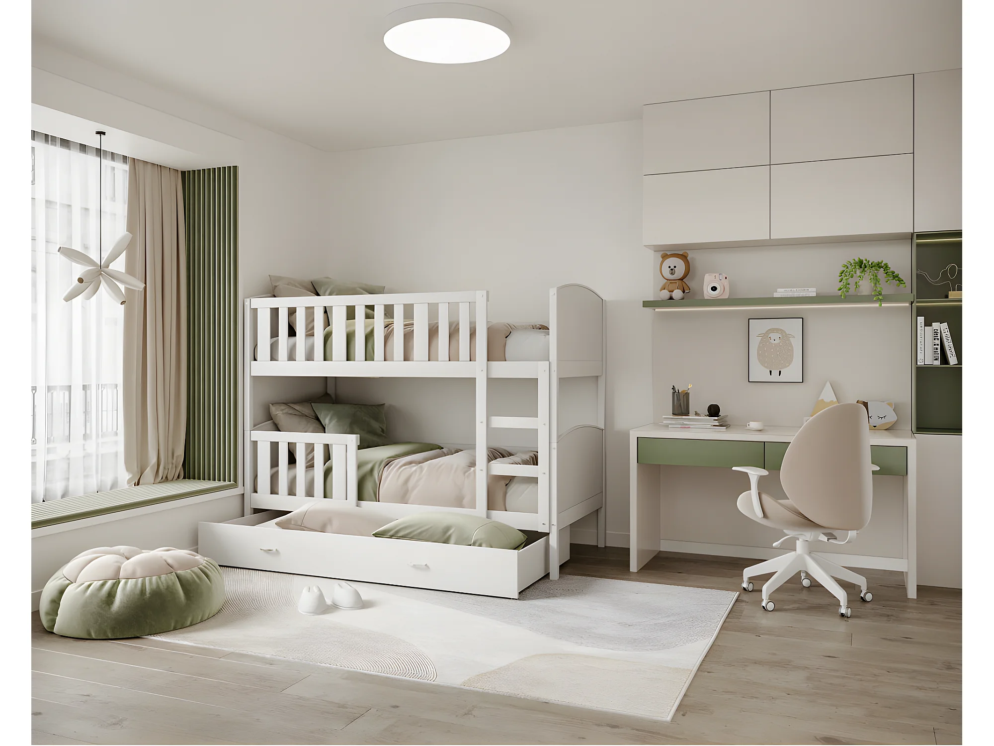 Lit superposé Tedy 90X190 cm - 2 Matelas , 2 Sommiers et Tiroir inclus Blanc