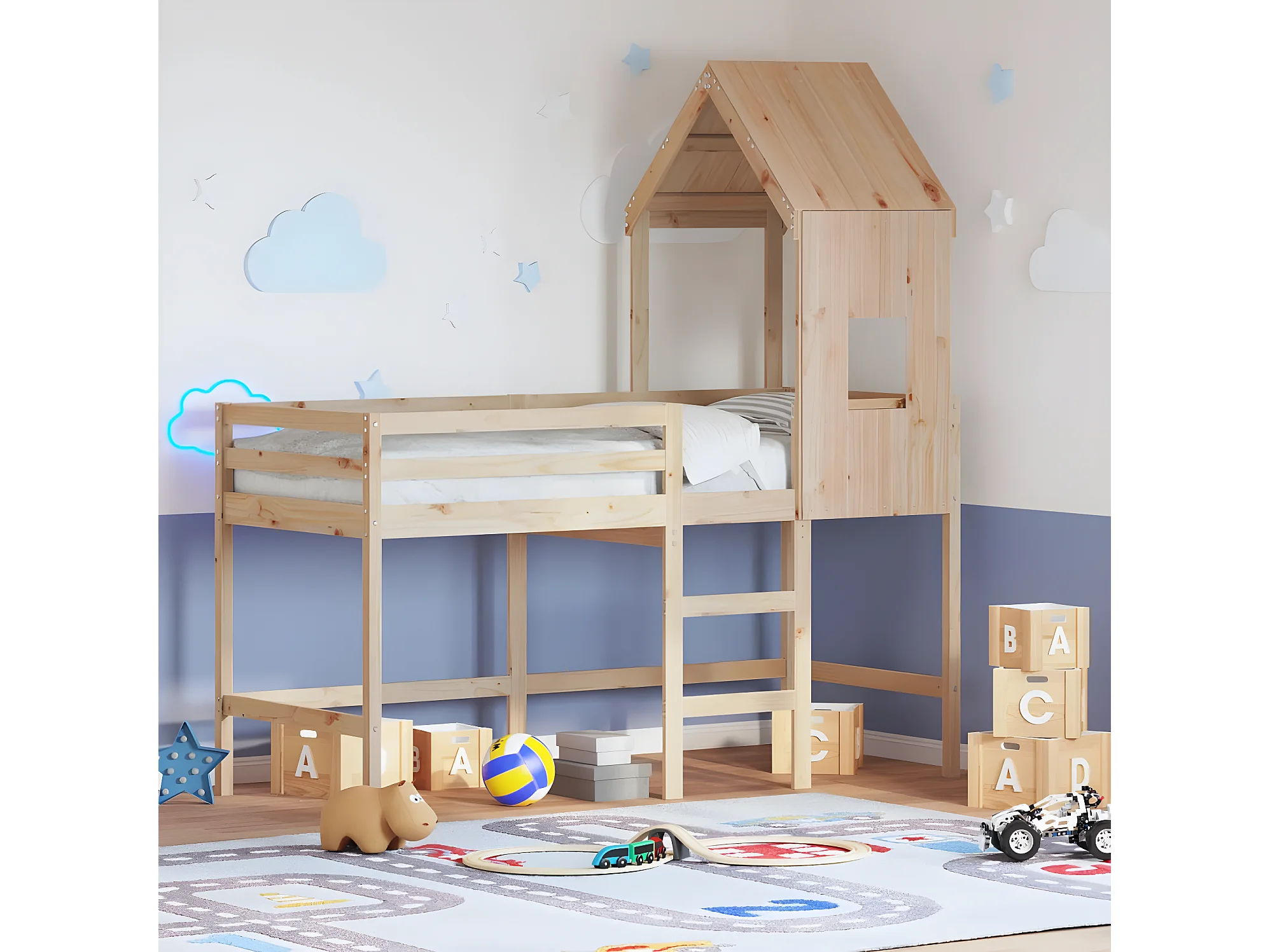 Lit superposé et échelle et toit 90x200 cm bois de pin massif