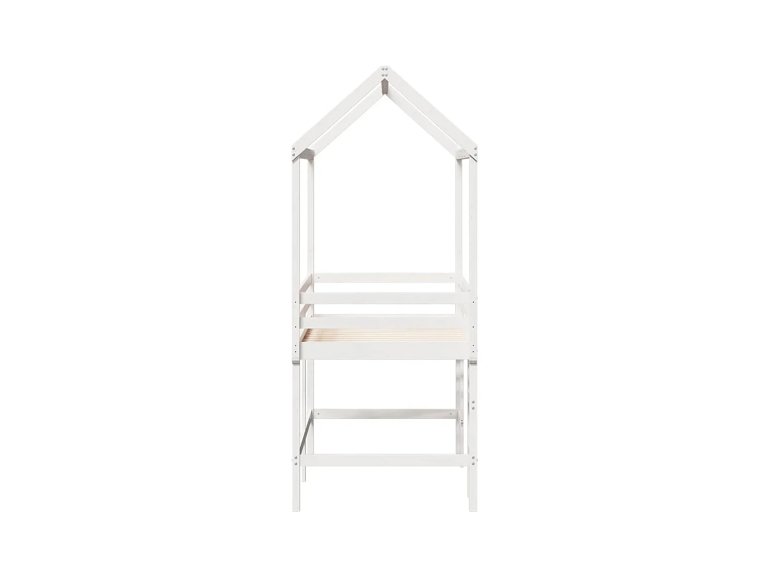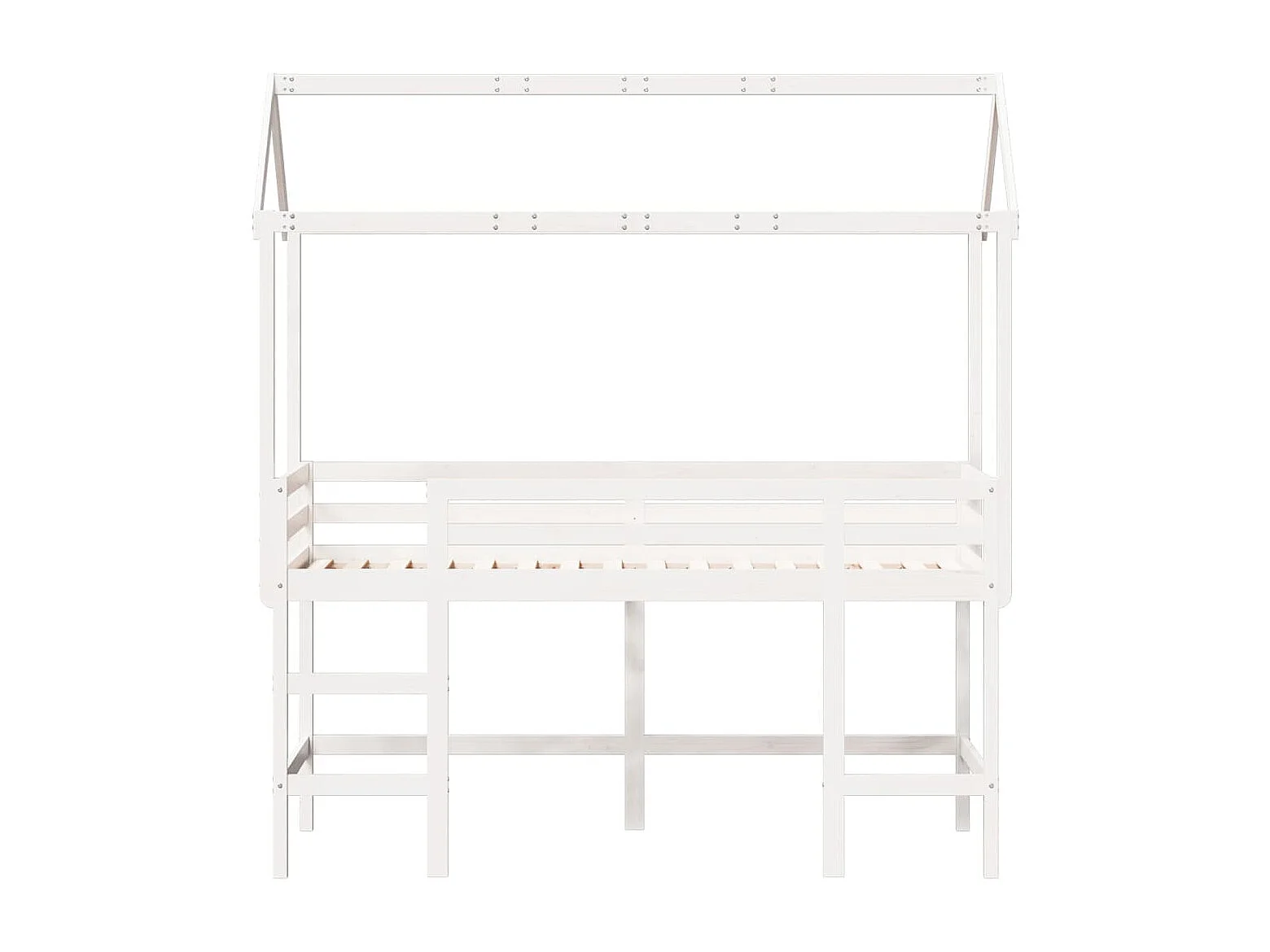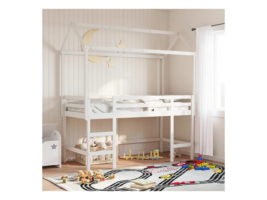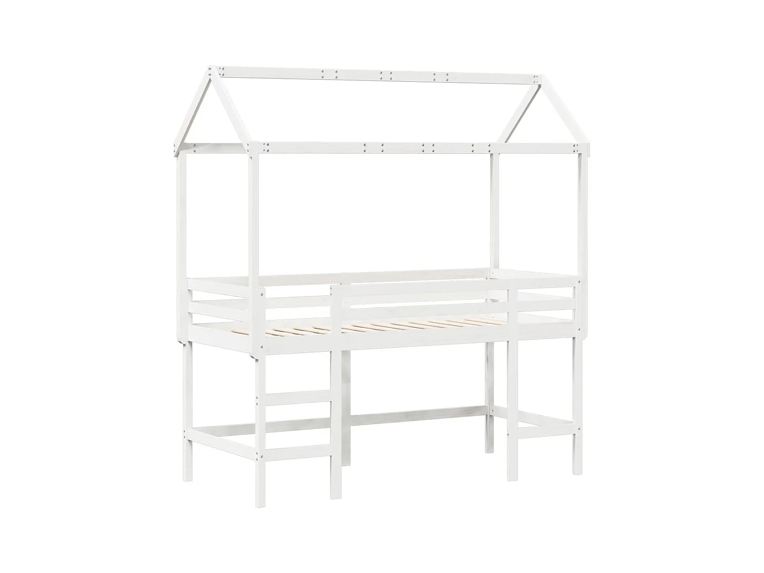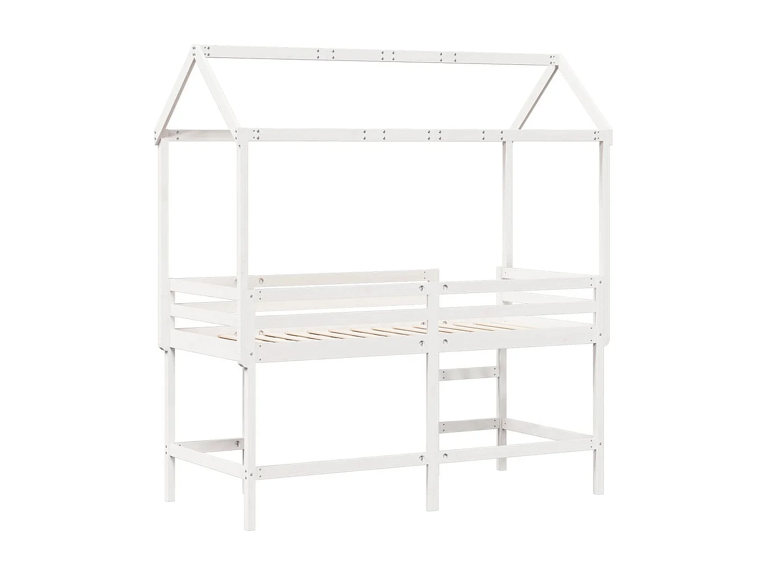 Lit superposé et échelle et toit blanc 80x200cm bois pin massif