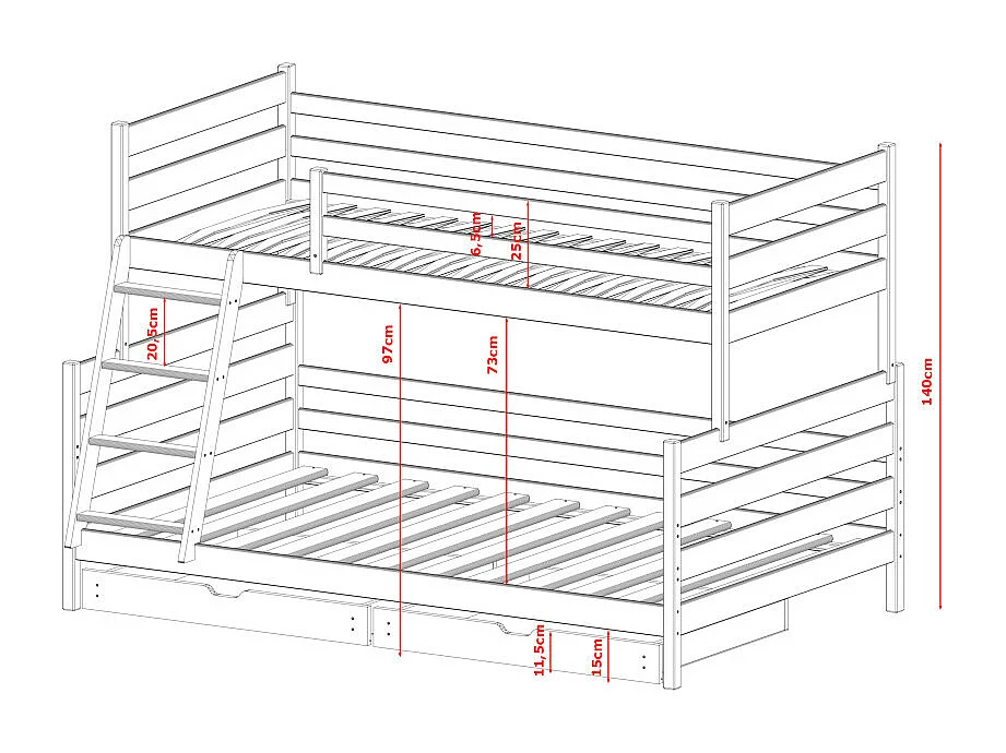 Lit Superposé FANNY 90x200/120x200 Blanc - blanc Livré avec le sommiers et tiroir.