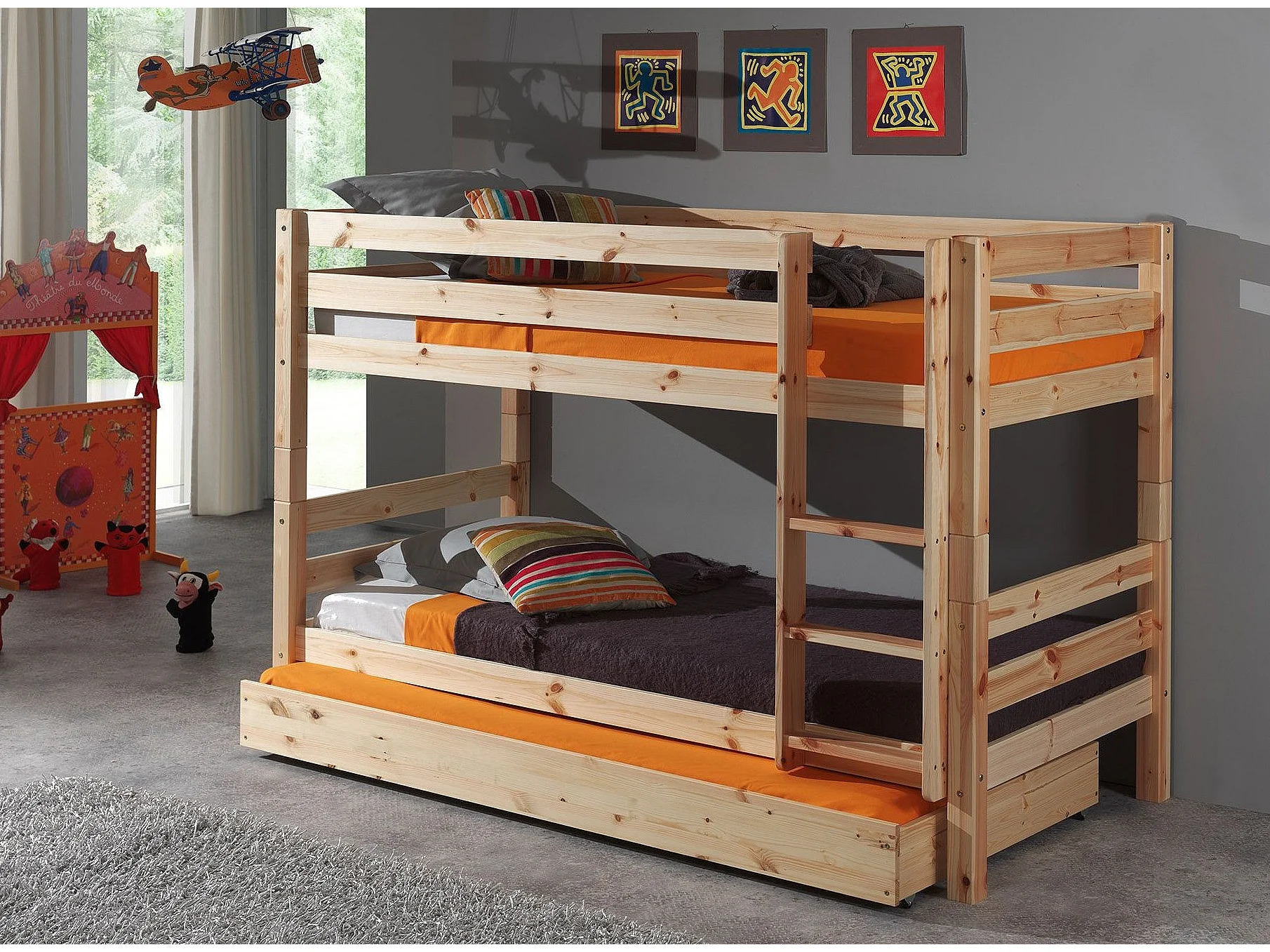 Lit Enfant Superposé & Tiroir de Lit "Pino" 90x190cm Naturel