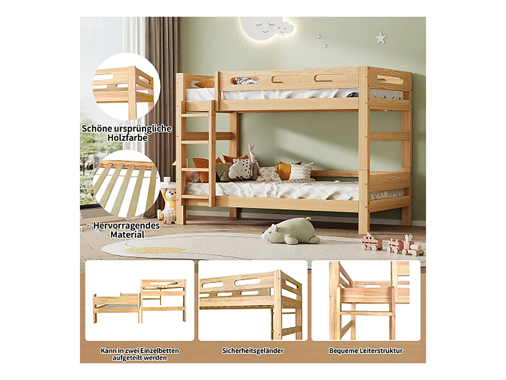 Lit superposé Lit enfants et adolescents divisé en 2 Lit cabane 90x200cm Naturel