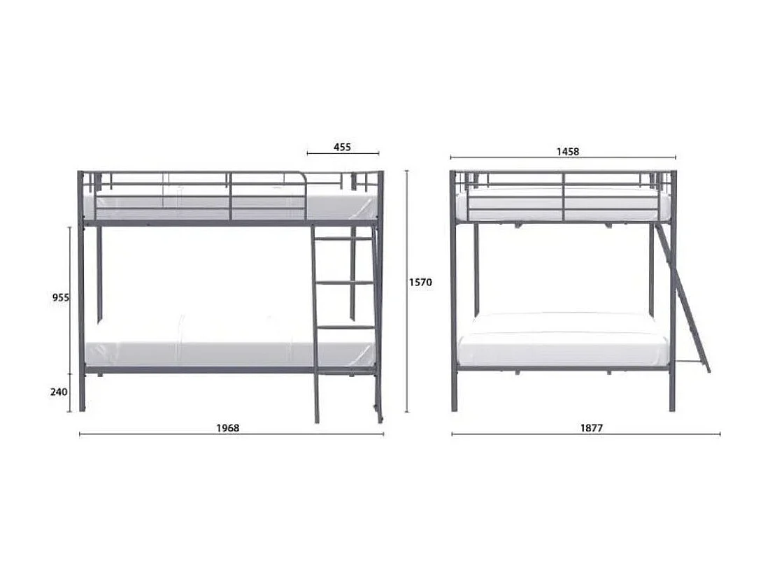 Lit superposé métal 140x190 Big Boss-Couleur Gris foncé