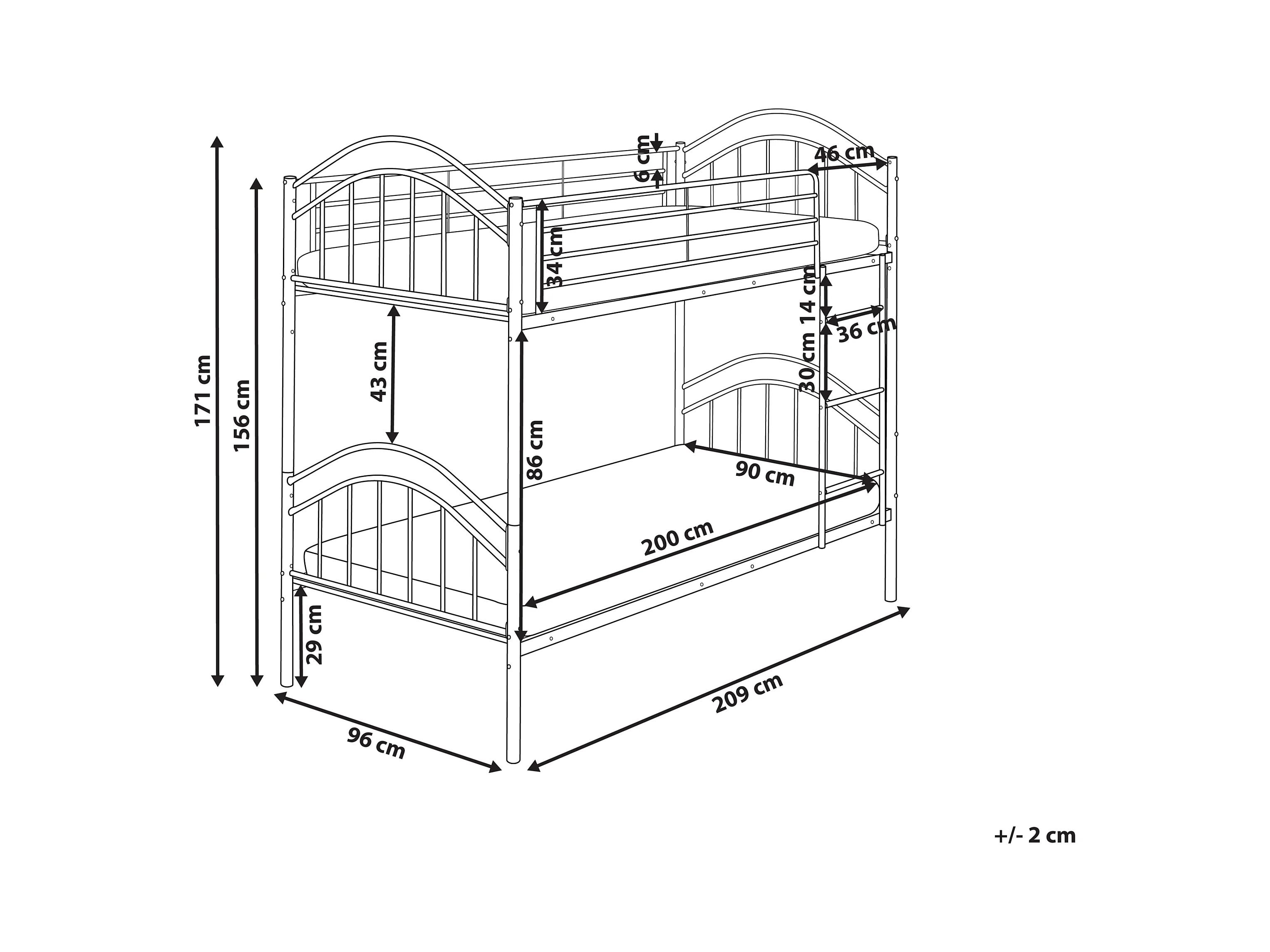 Lit superposé Métal CHARTRES 90 x 200 cm Blanc