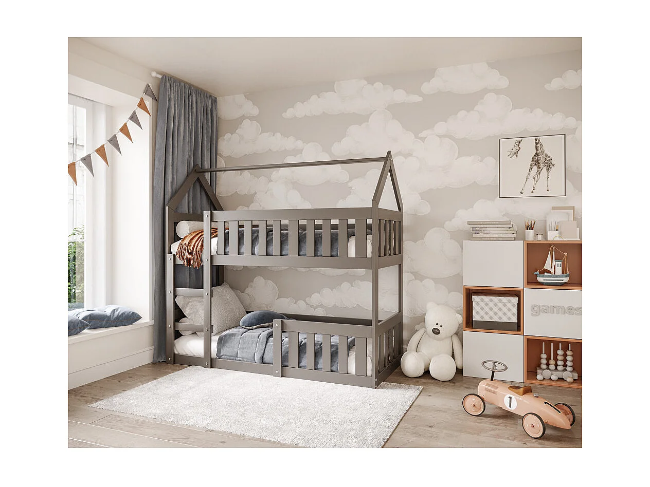 Lit superposé Mily 80 x 160 cm avec 2 sommiers - Lit Cabane. Gris