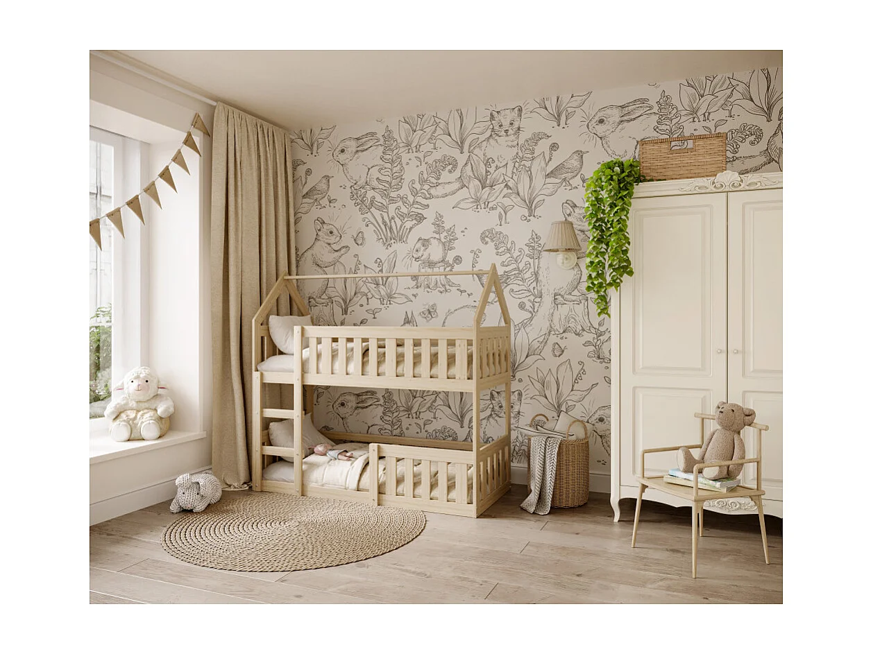 Lit superposé Mily 80 x 160 cm avec 2 sommiers - Lit Cabane. Pin
