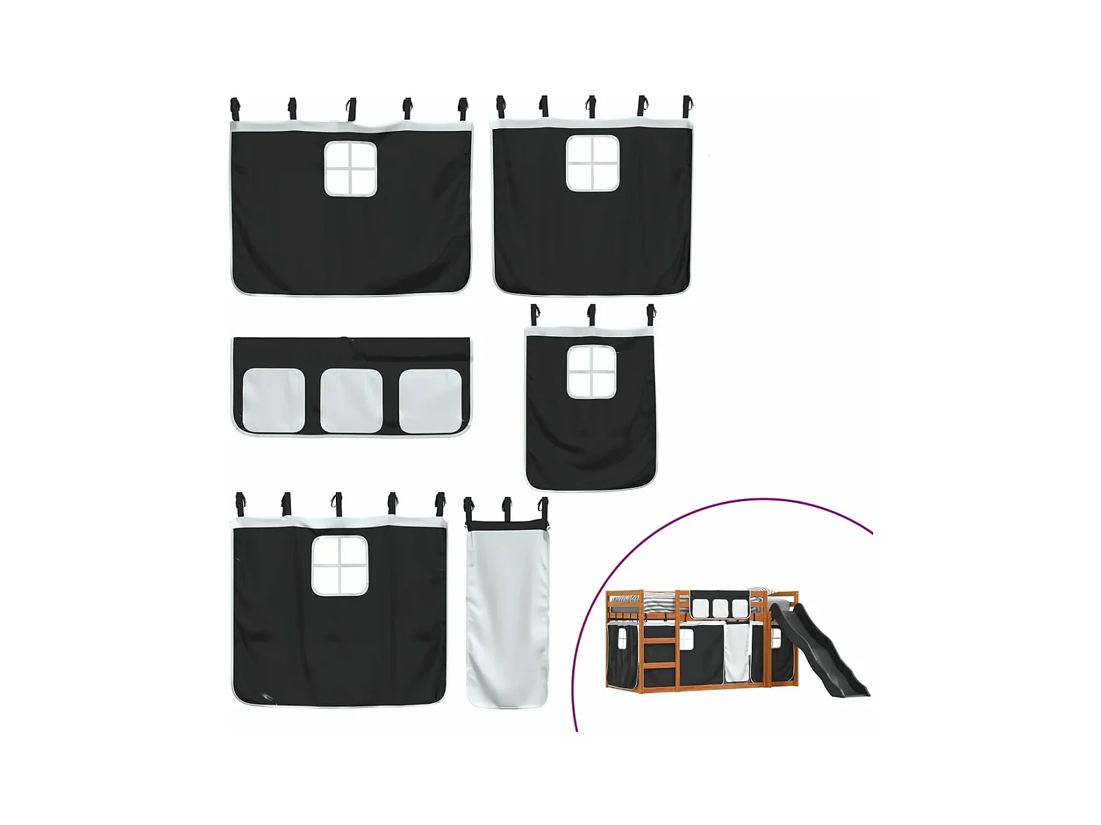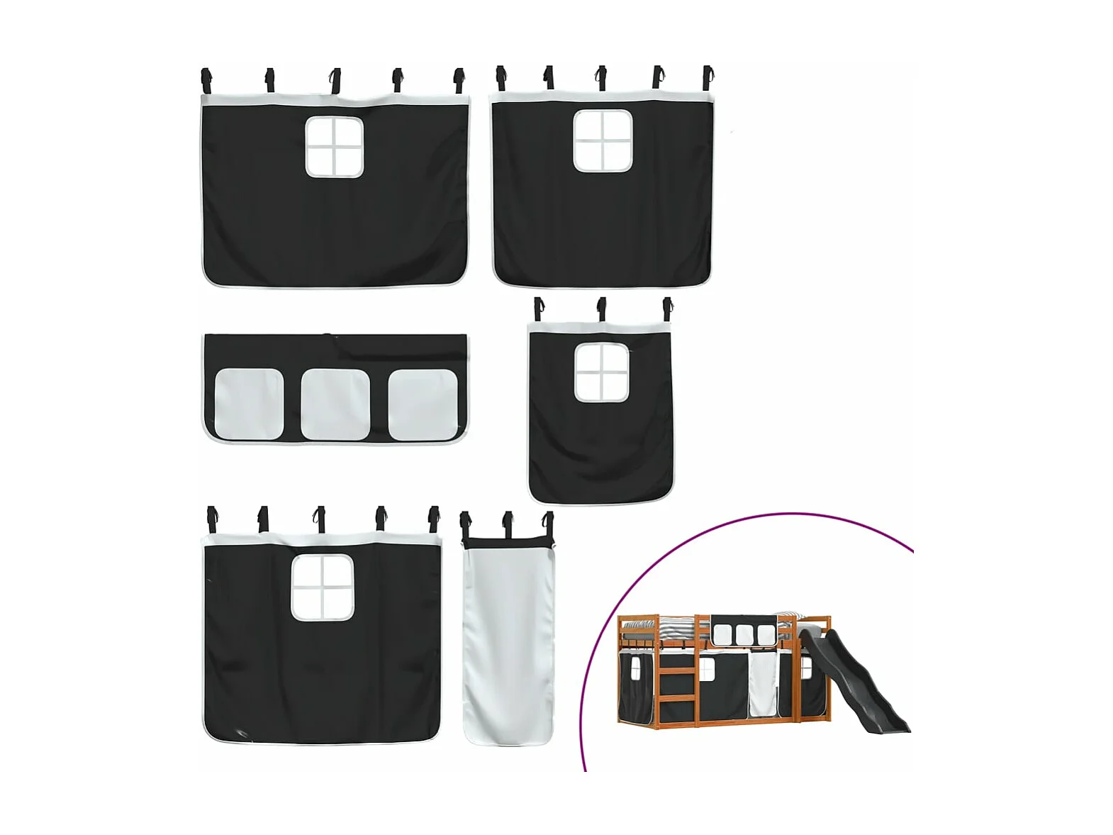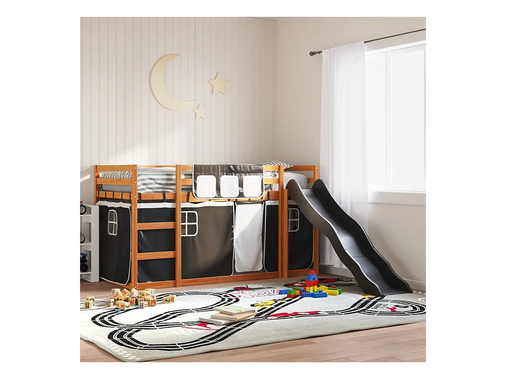 Lit superposé sans matelas avec toboggan blanc noir 90x200 cm