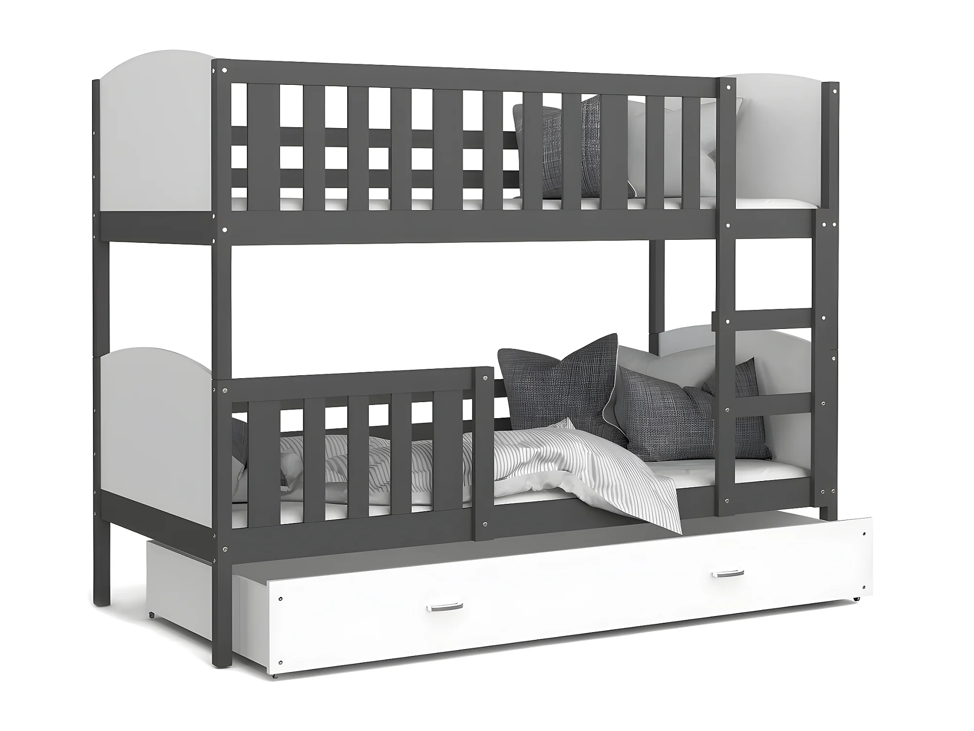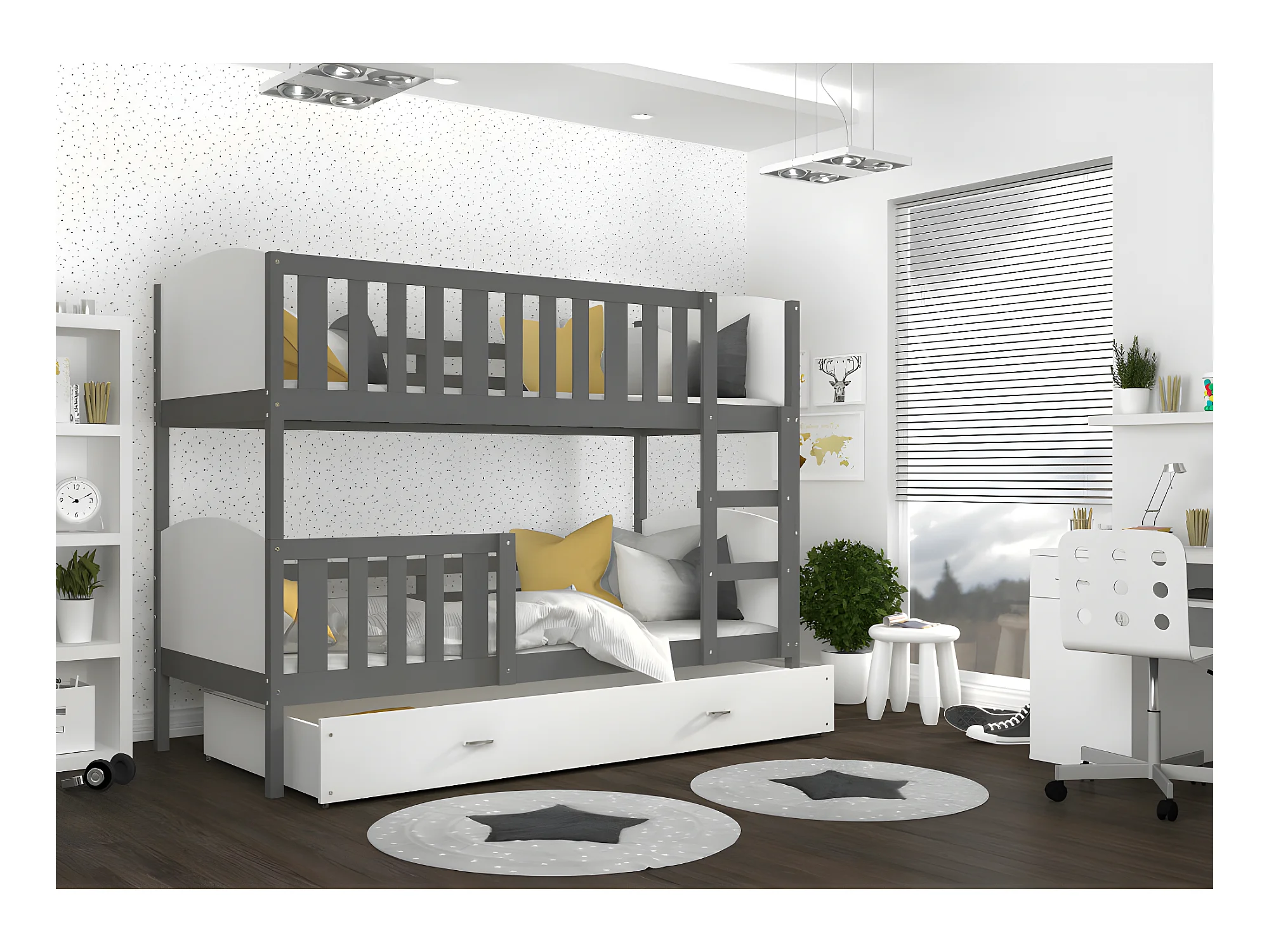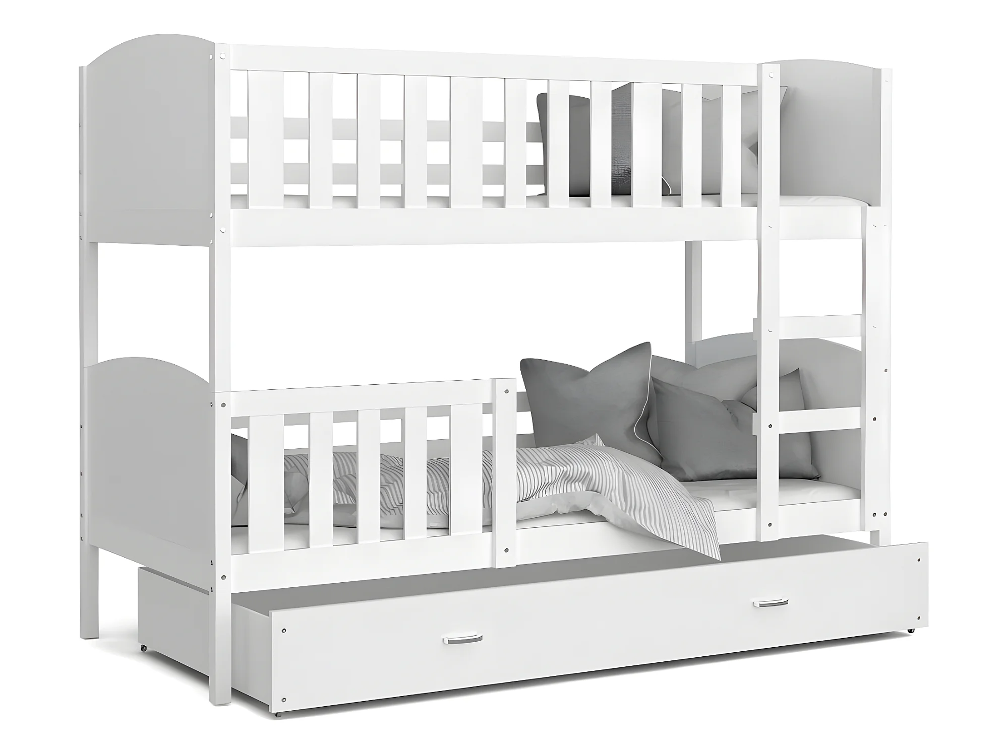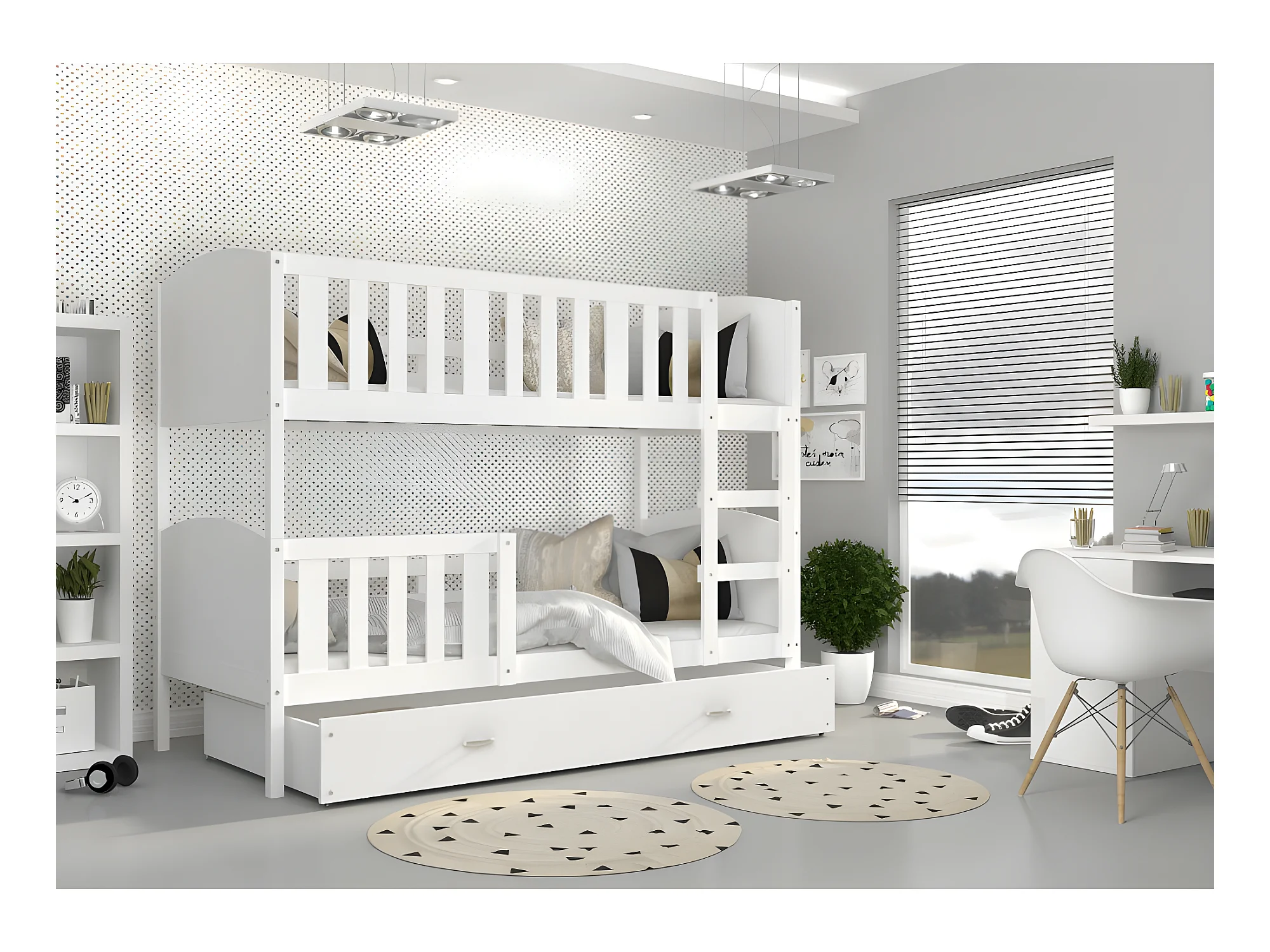 Lit Superposé Tomy 80x160 Blanc - blanc Livré avec sommiers, tiroir et matelas en mousse de 7cm