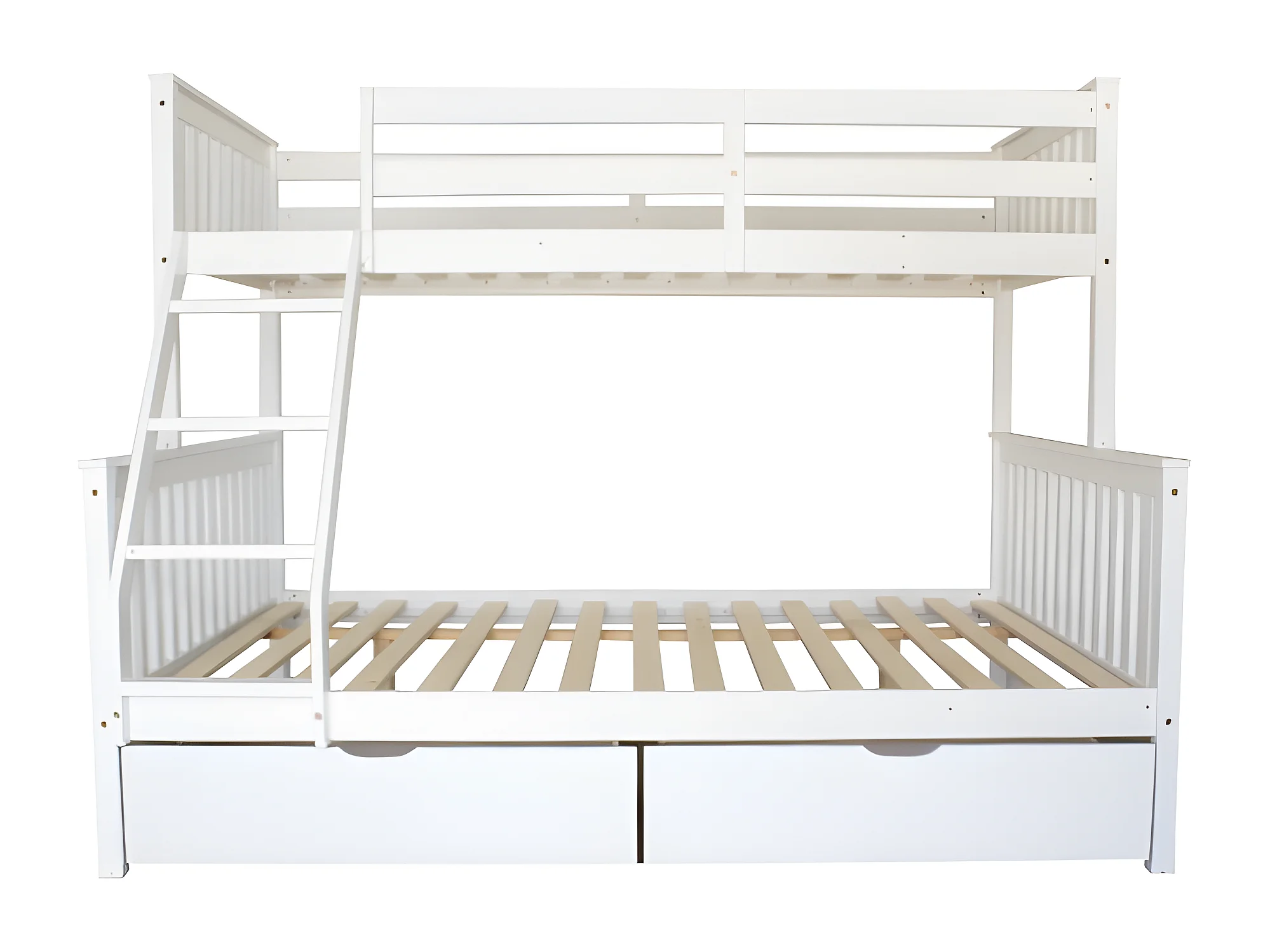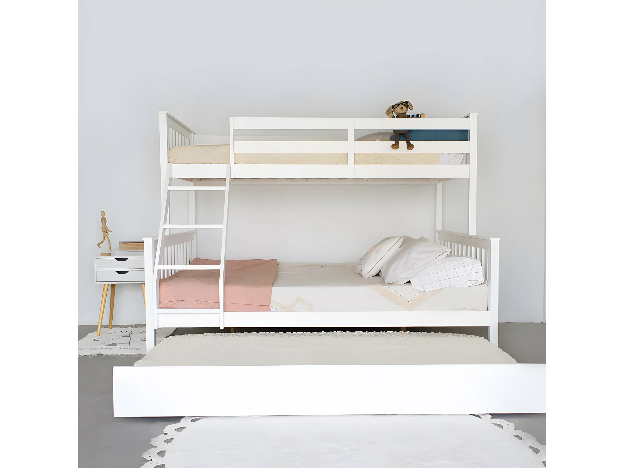Lit superposé triple + 2 tiroirs bois bois blanc 135 cm