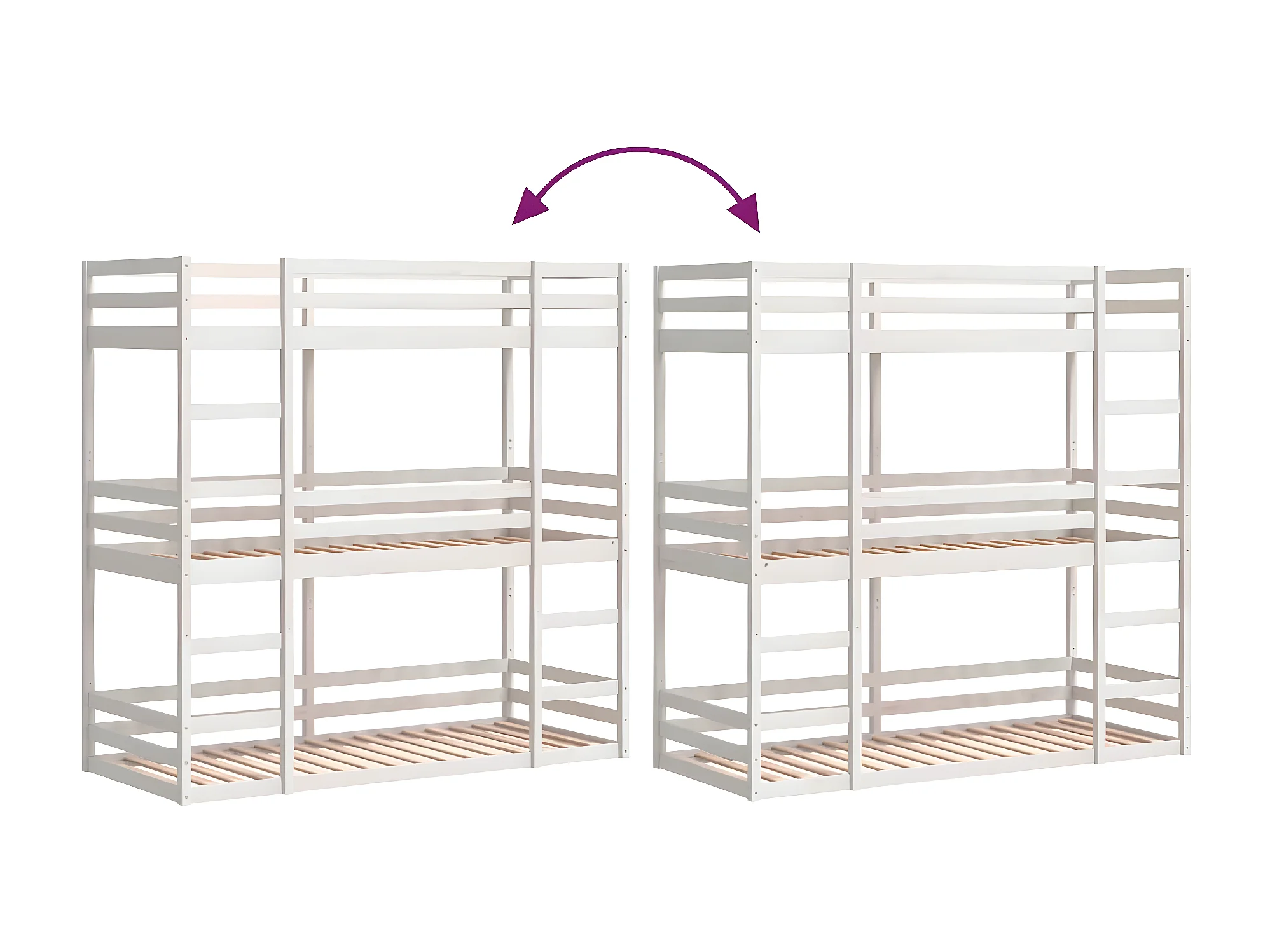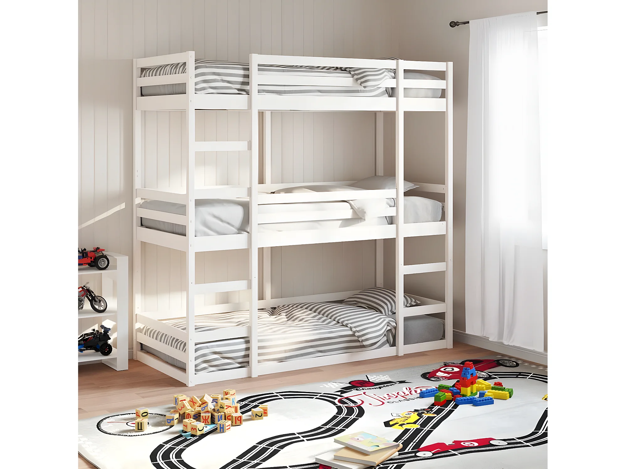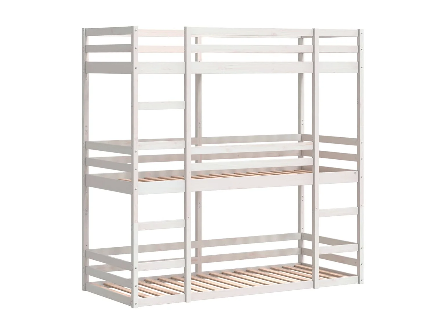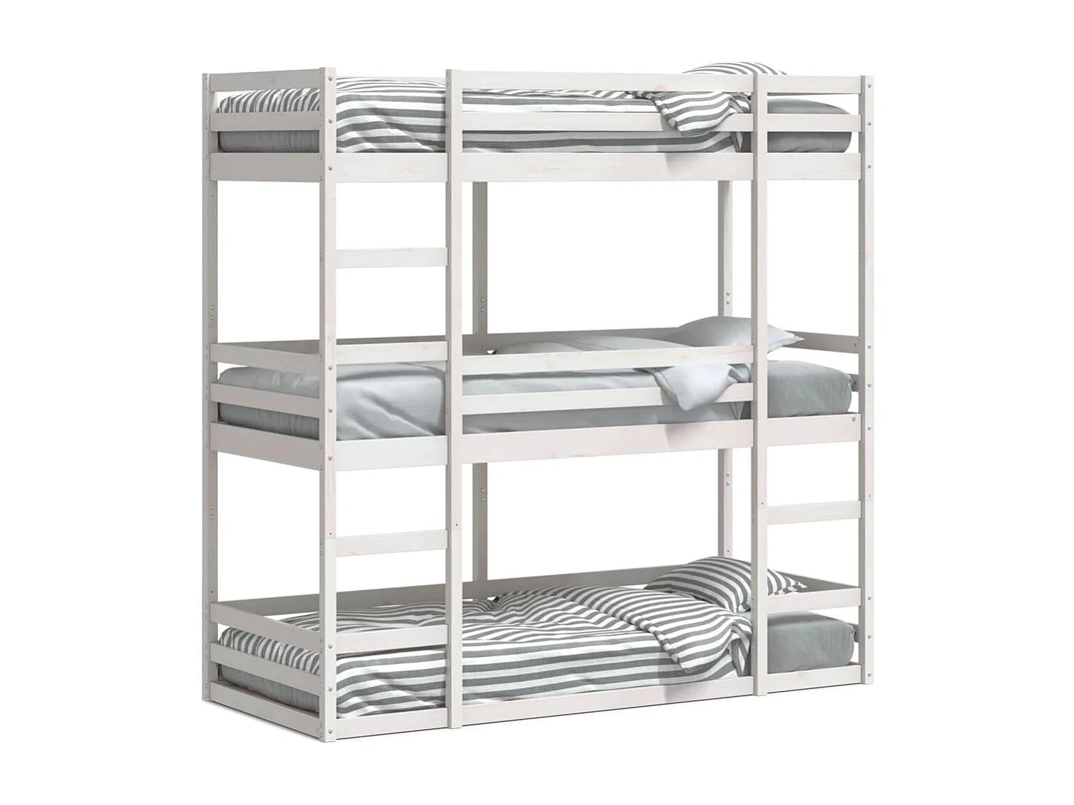 Lit superposé triple blanc 75x190 cm bois de pin massif