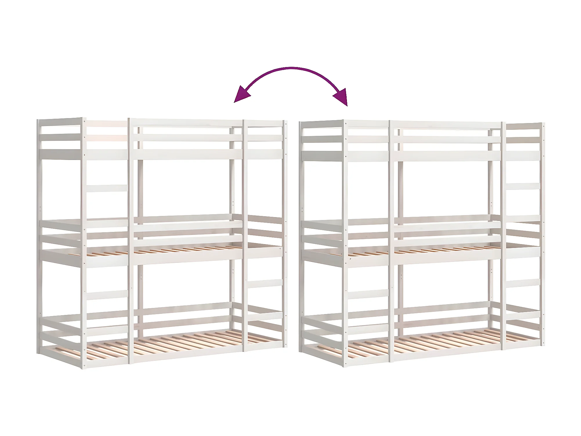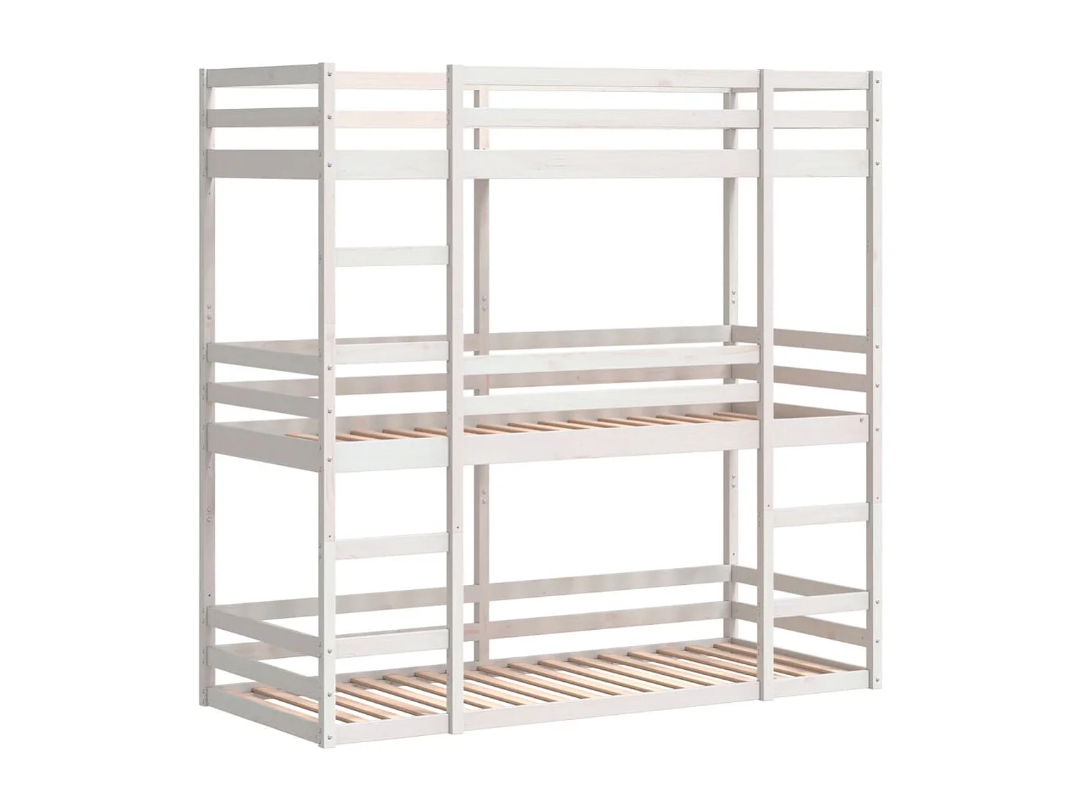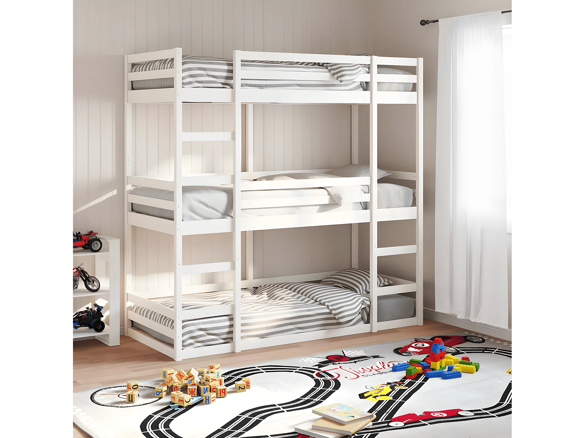 Lit superposé triple blanc 90x190 cm bois de pin massif