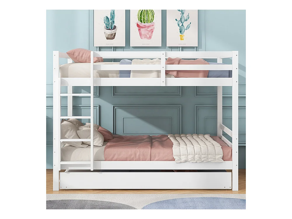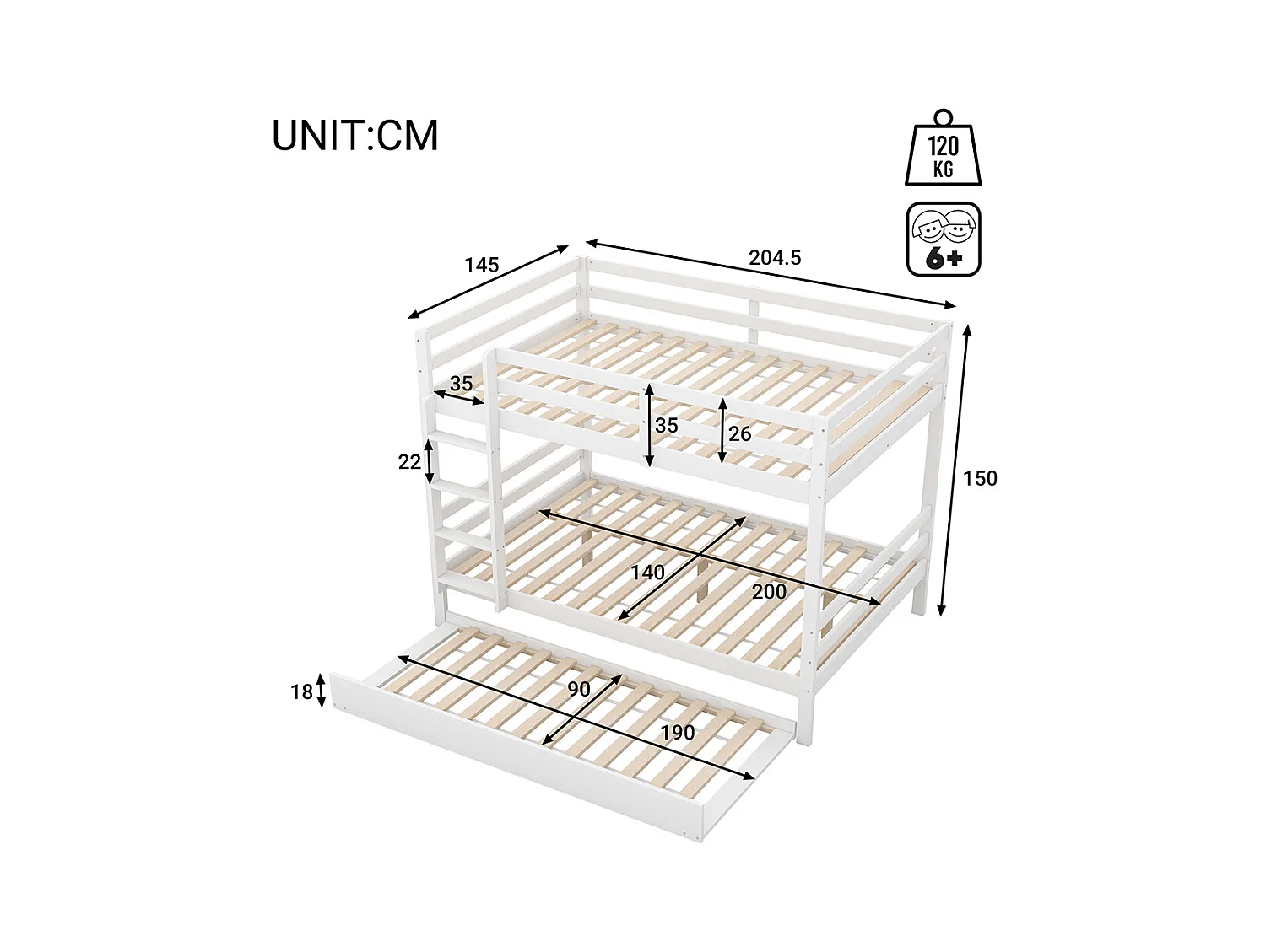 Lit superposés Lit jeune 140x200 cm Lits d'enfant avec lit gigogne Rampes hautes Escalier stable Blanc