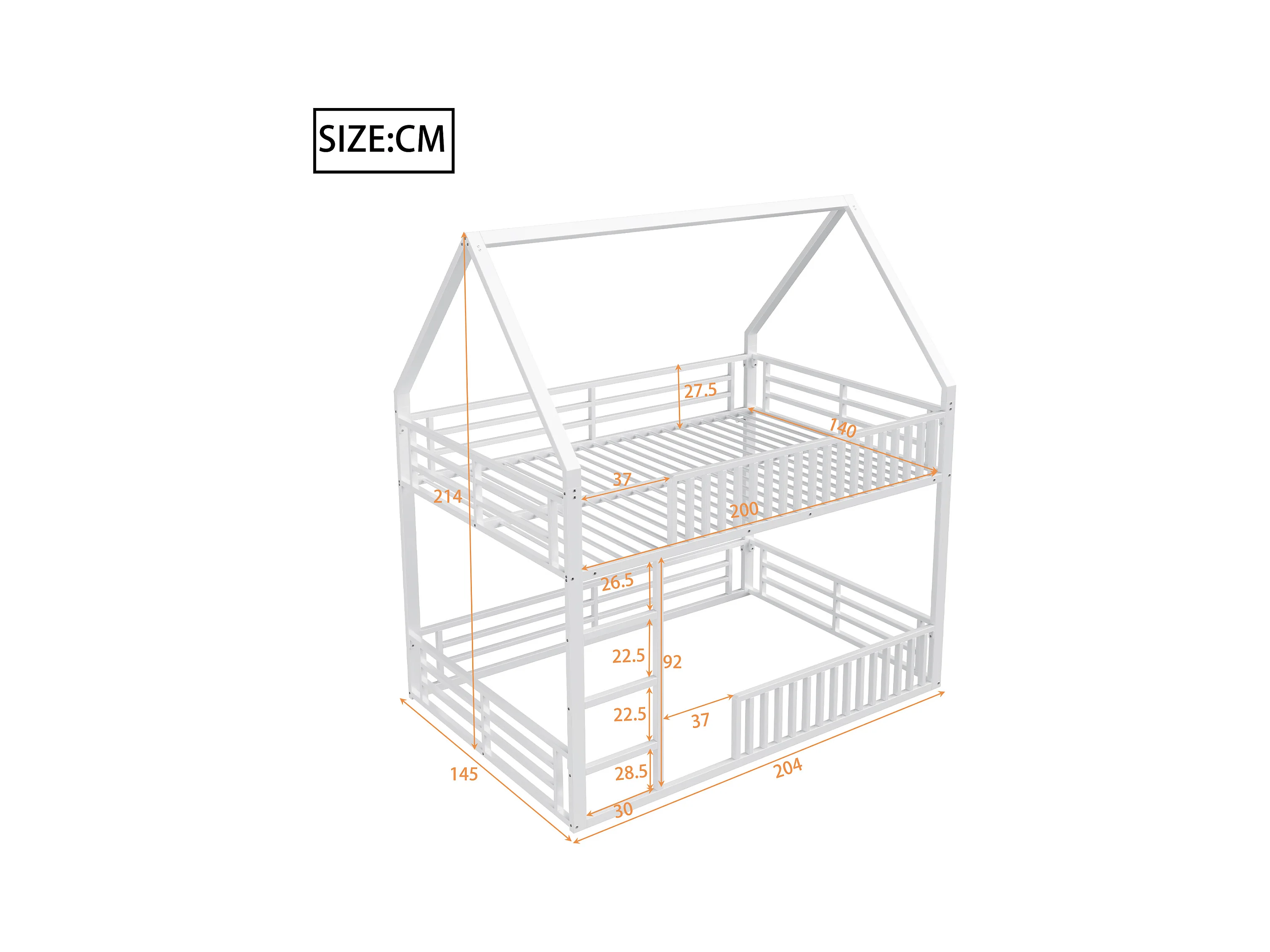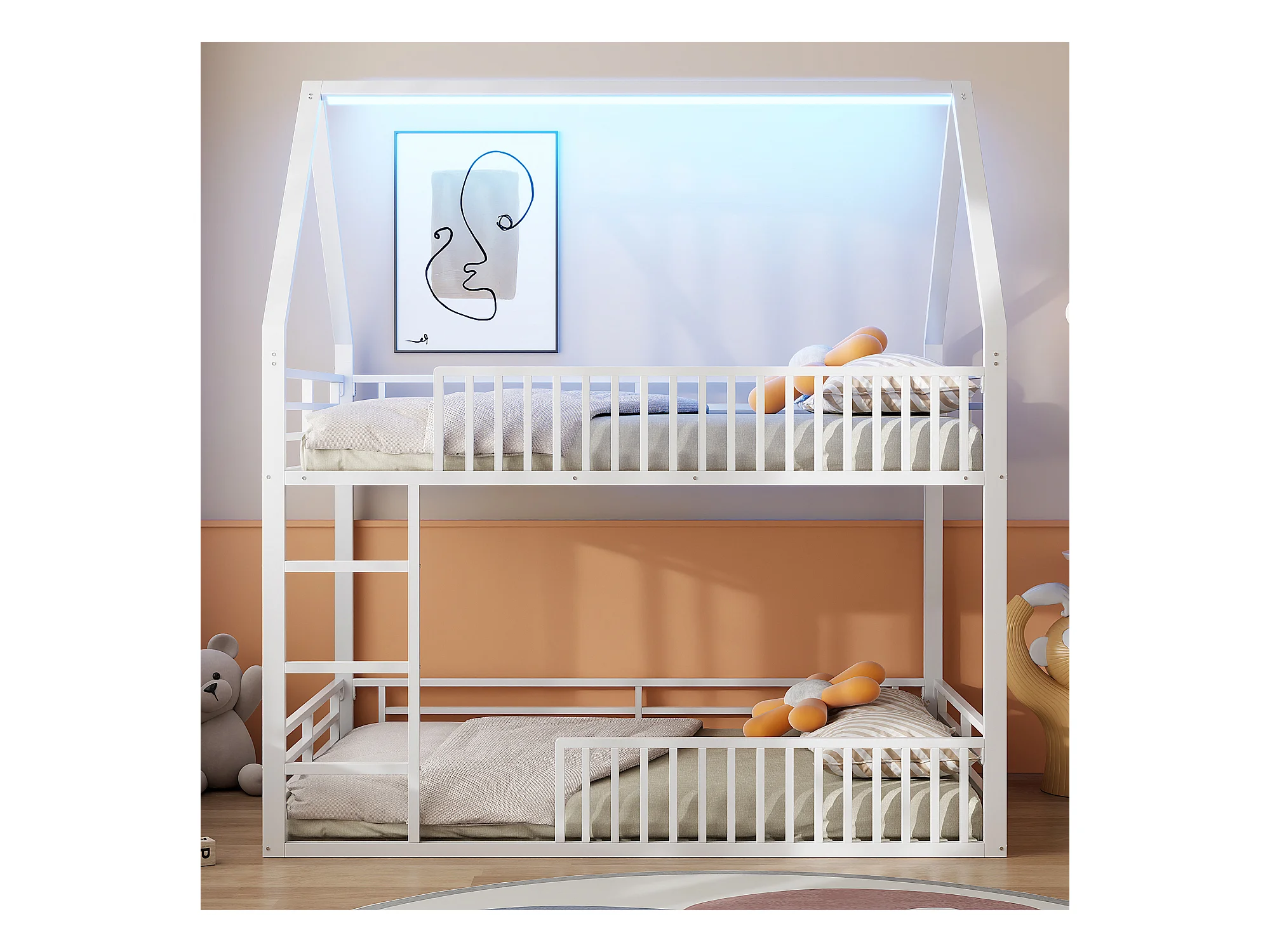 Lit superposés pour enfant - 2 x 140 x 200 cm - avec barrière + Leds - Métal - blanc