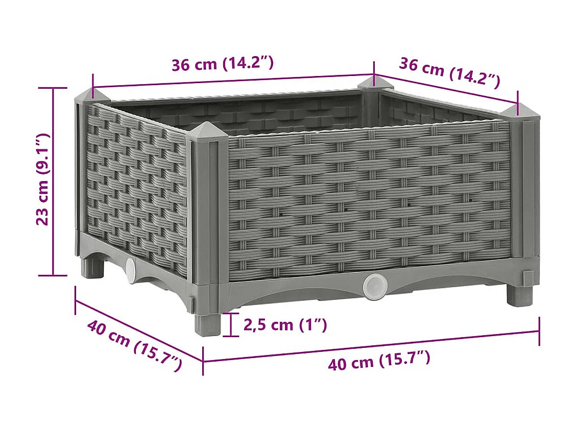 Lit surélevé de jardin avec système d'arrosage Gris 43x43x33 cm