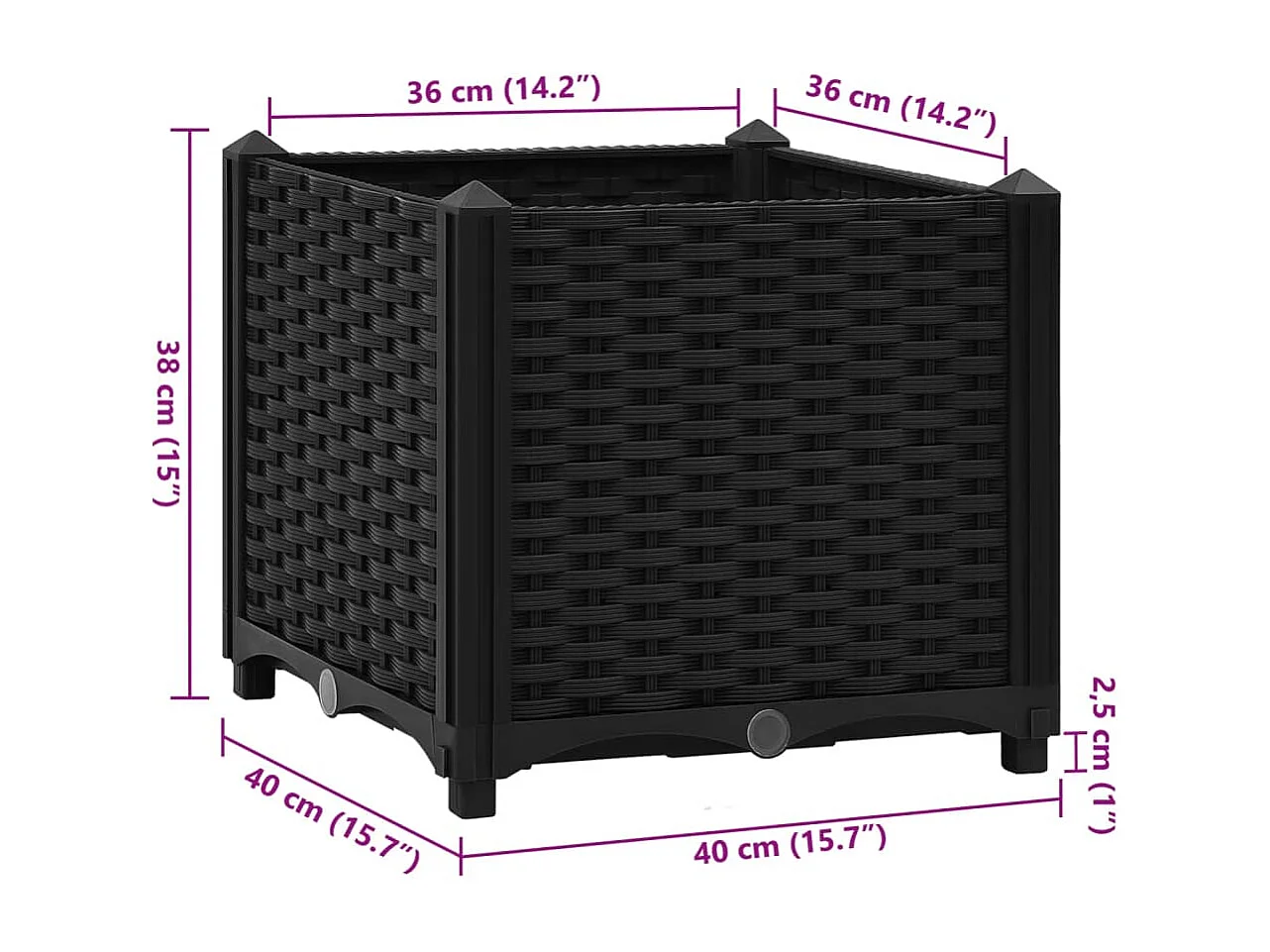 Lit surélevé treillis 2 pots 58x30x107 cm Résine tressée Marron