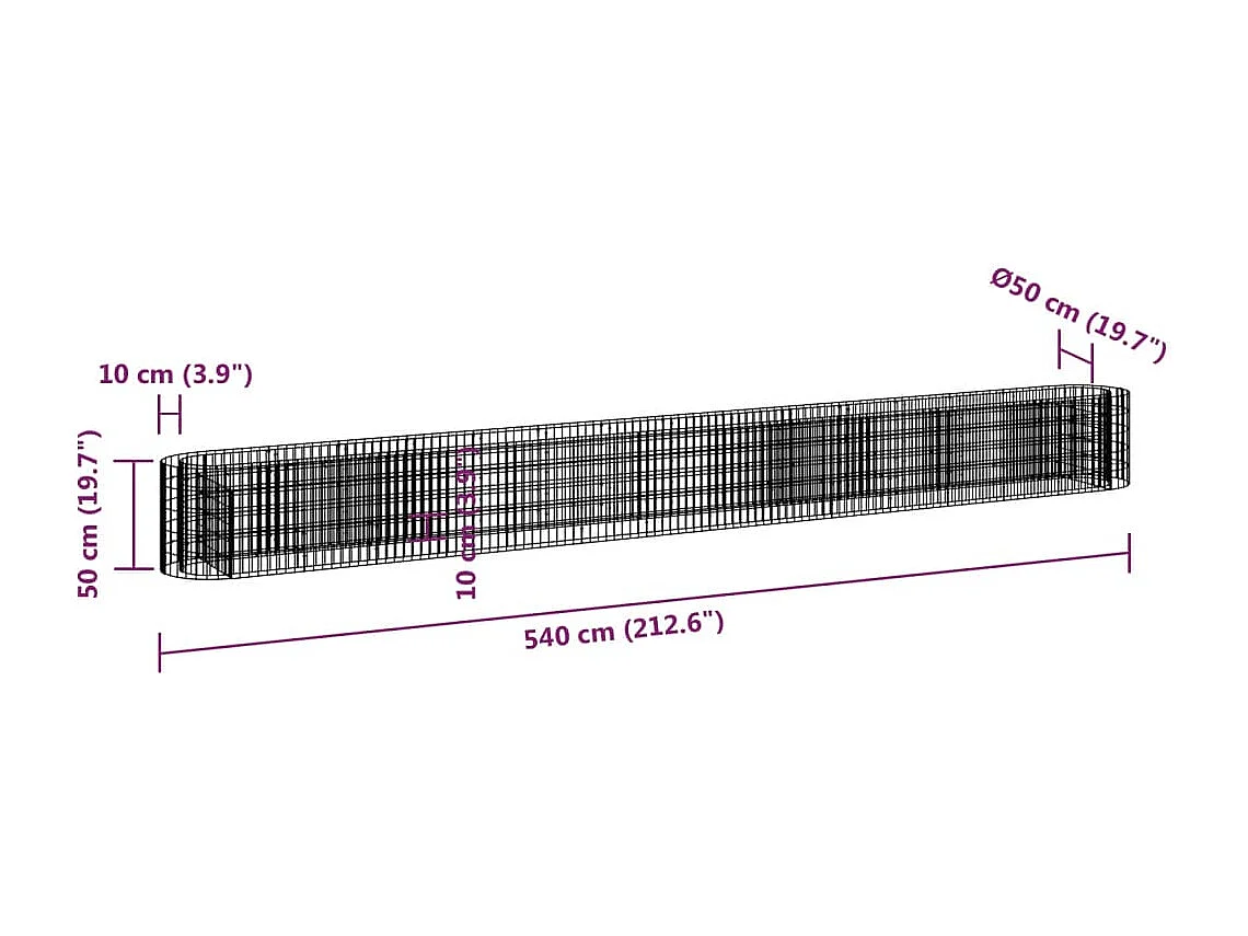 Lit surélevé à gabion Fer galvanisé 540x50x50 cm