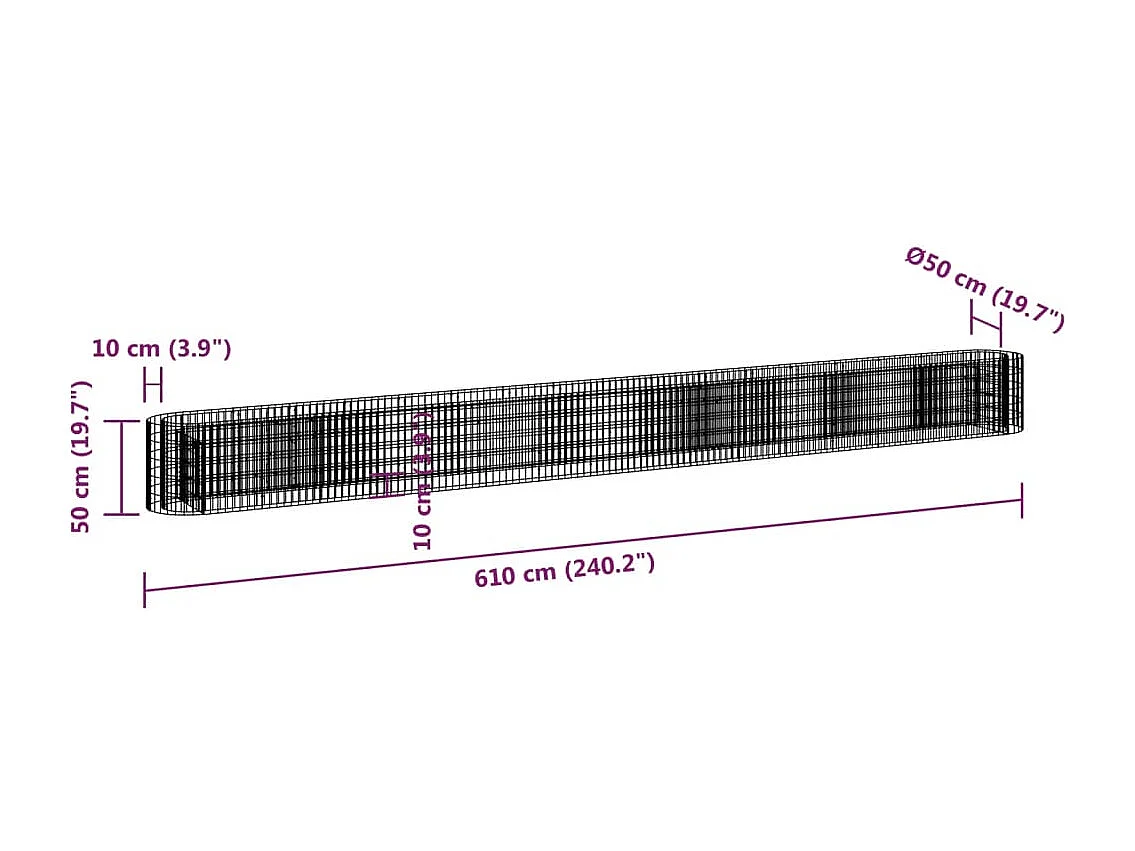 Lit surélevé à gabion Fer galvanisé 610x50x50 cm