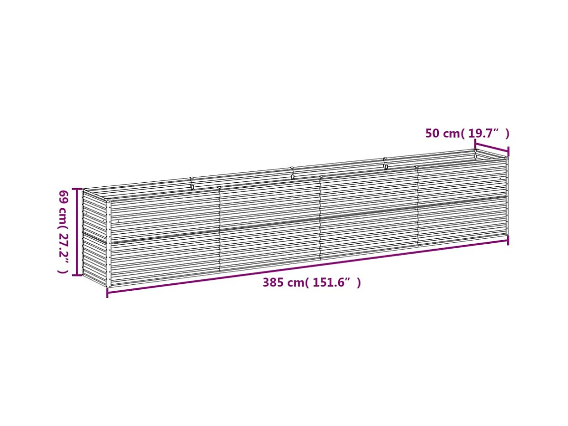 Lit surélevé de jardin 385x50x69 cm acier corten