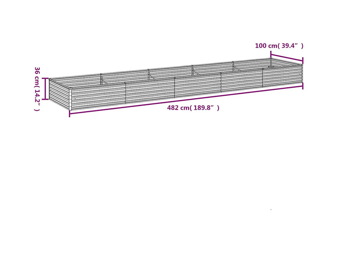 Lit surélevé de jardin 482x100x36 cm acier corten