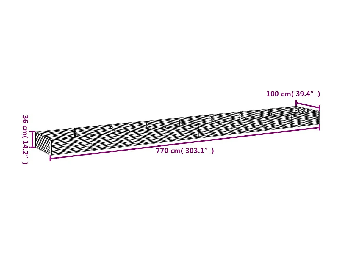 Lit surélevé de jardin 770 x 100 x 36 cm acier corten