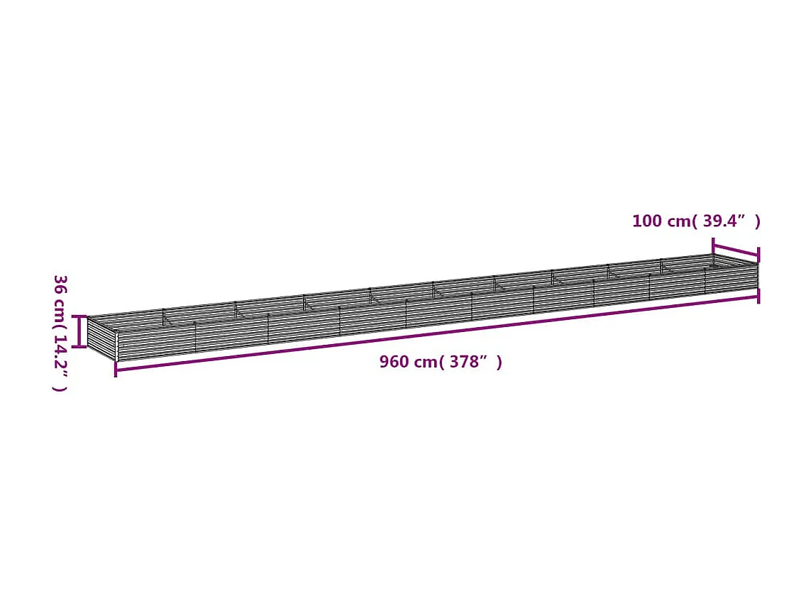 Lit surélevé de jardin 960x100x36 cm acier corten