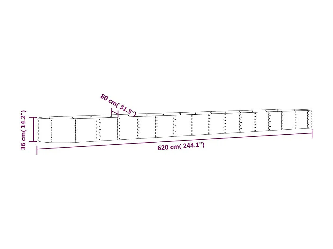 Lit surélevé de jardin Acier enduit de poudre 620x80x36 cm gris