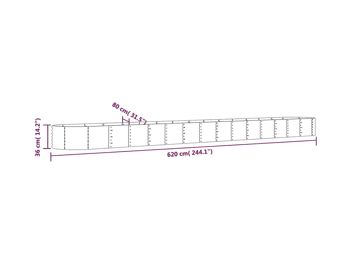 Lit surélevé de jardin Acier enduit de poudre 620x80x36 cm gris
