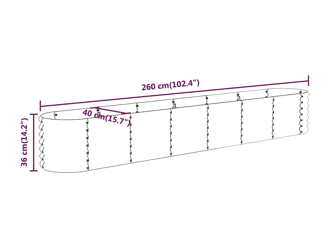 Lit surélevé de jardin Acier enduit de poudre 260x40x36 cm gris