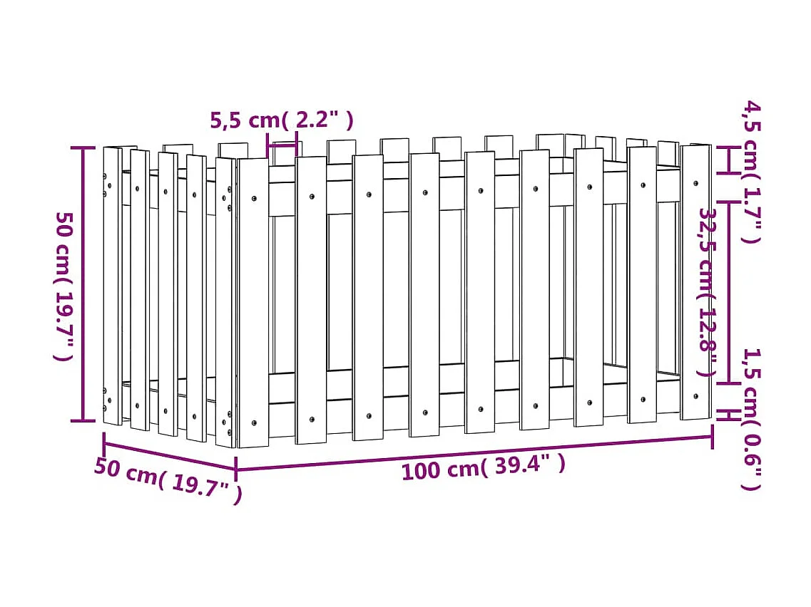 Lit surélevé de jardin design de clôture 100x50x50 pin massif